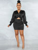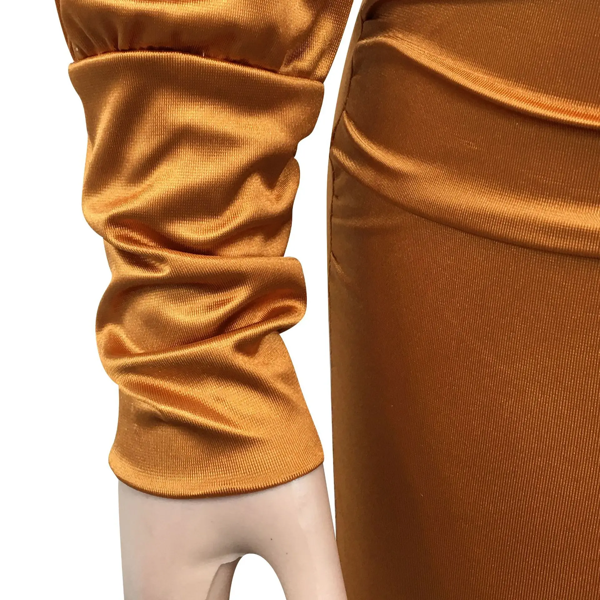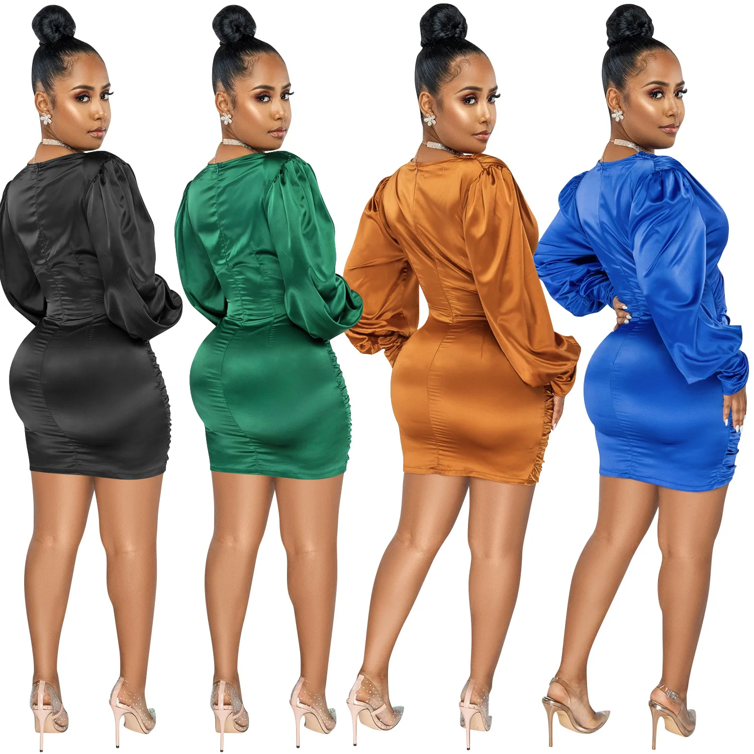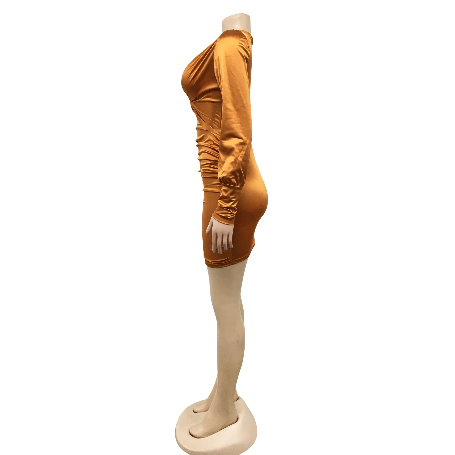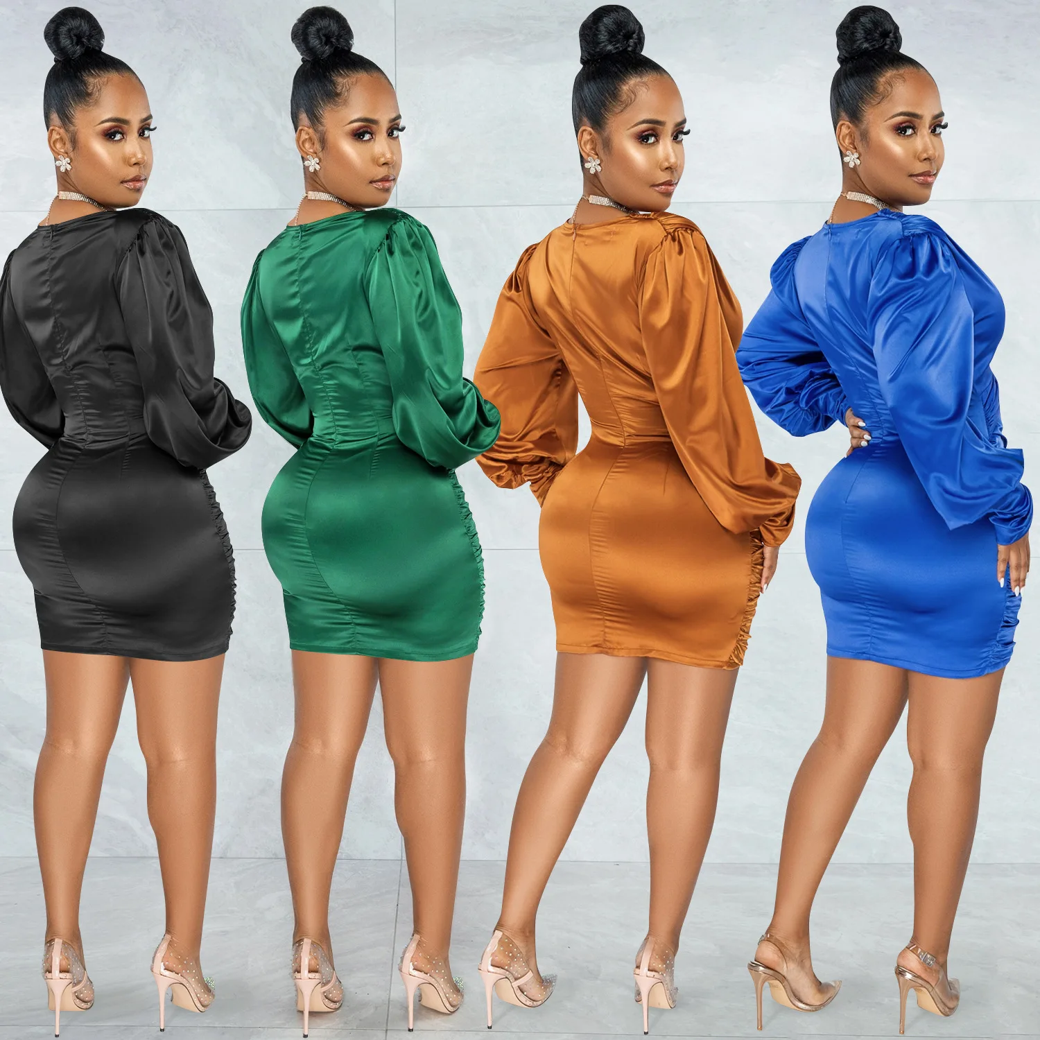 victoria’s vogue Women Dress Long Sleeve Cut Out V Neck Sexy Shiny Satin Clubwear African Evening Night Sheath Bodycon Date Event Robes Y2K 2022