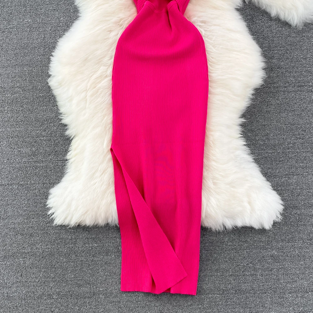 Victoria’s Vogue Women Dress Sexy Wrap Hips Two Sides Available Split One-Piece Long Dress Fashion Knot Knitted Bodycon Party Robe Femme
