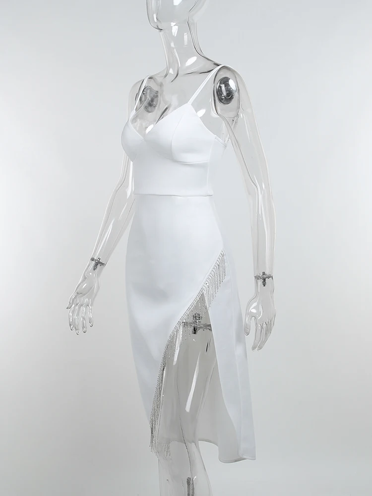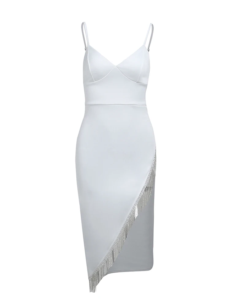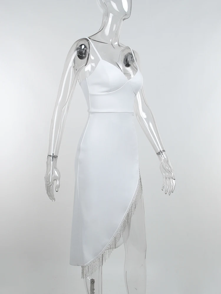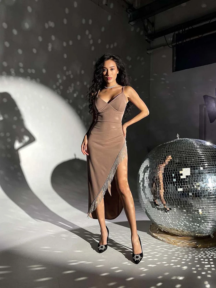 victoria’s vogue Women Elegant Partywear Dress Asymmetrical Tassel Autumn Sexy Streetwear Prom Female Clothing Cami Midi Dresses