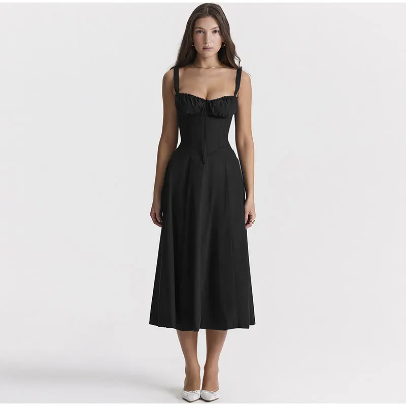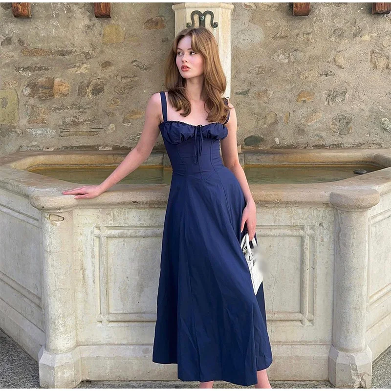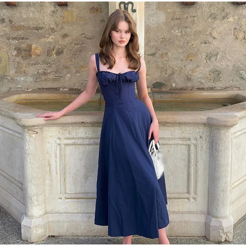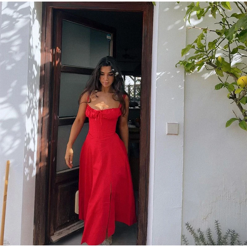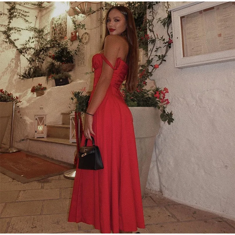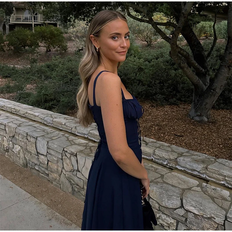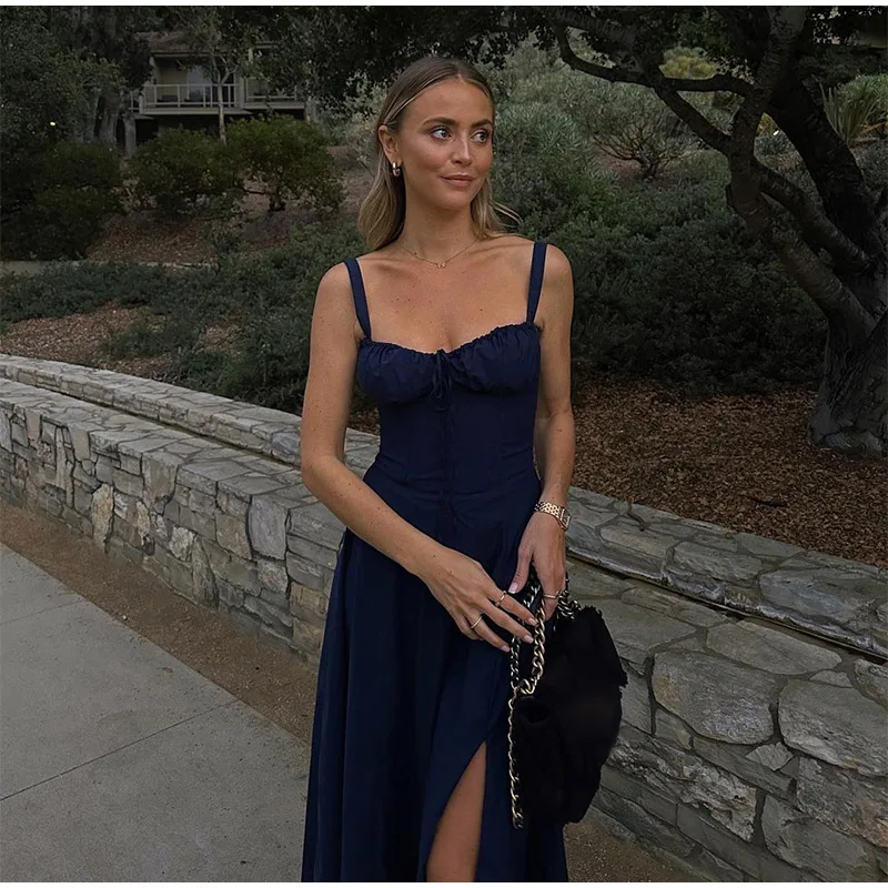 Victoria’s Vogue Women Elegant Sleeveless Sling Midi Dress Fashion Backless Chest Wrapped Lace Up Dresses 2024 Lady Slim Split Holiday Robes
