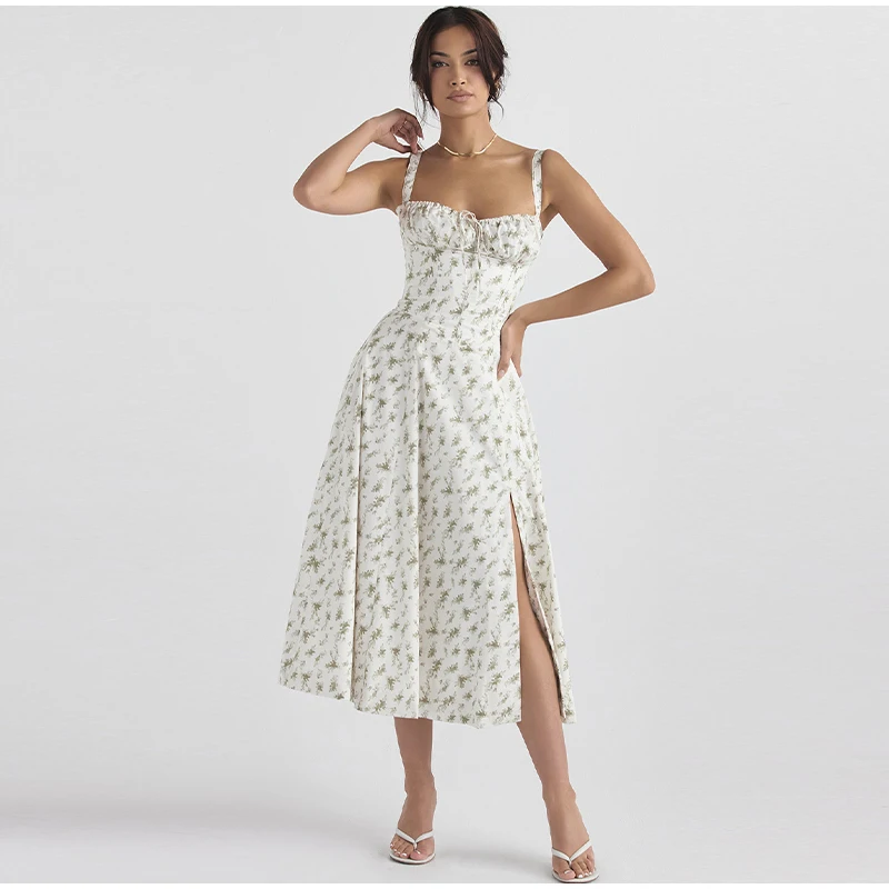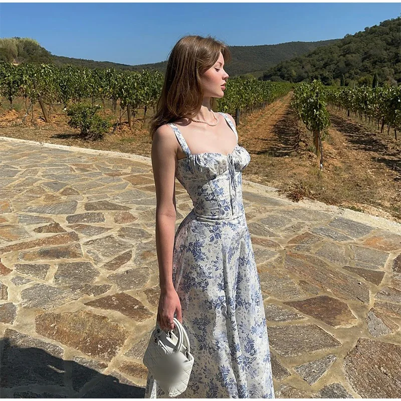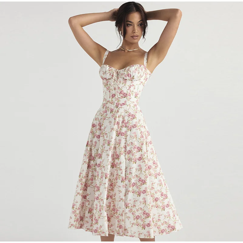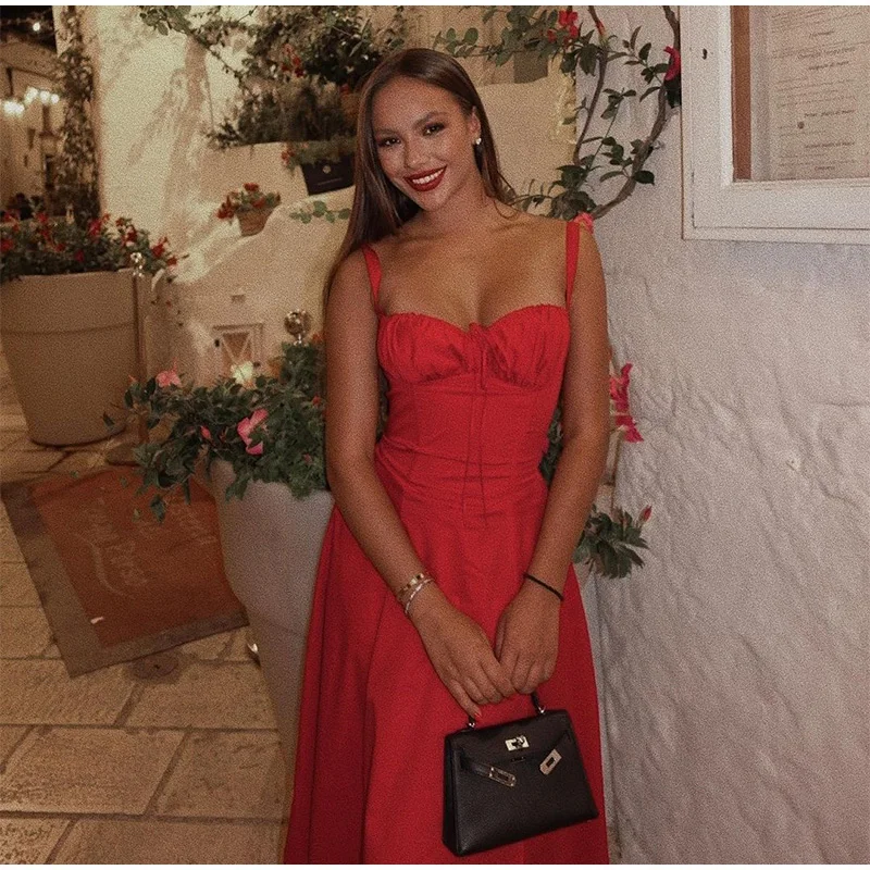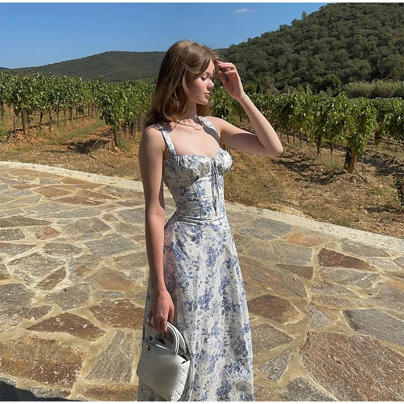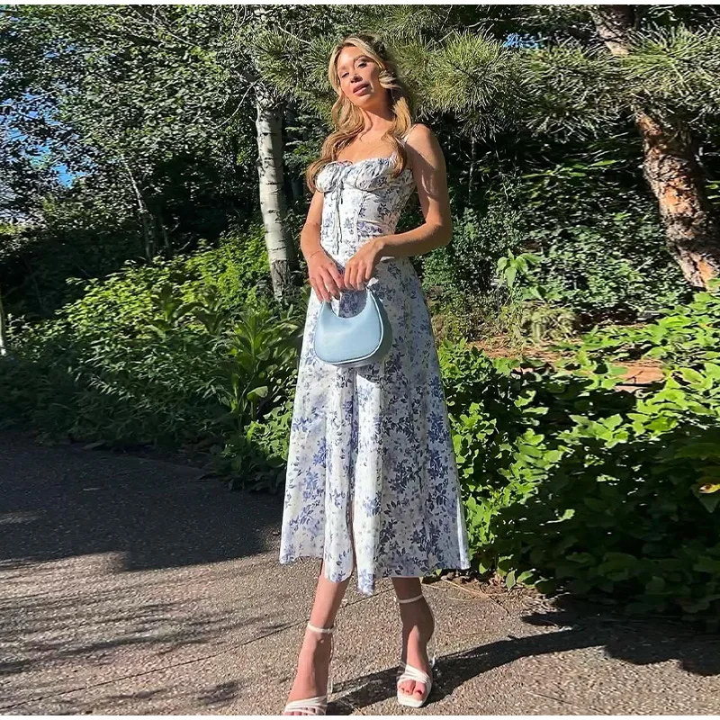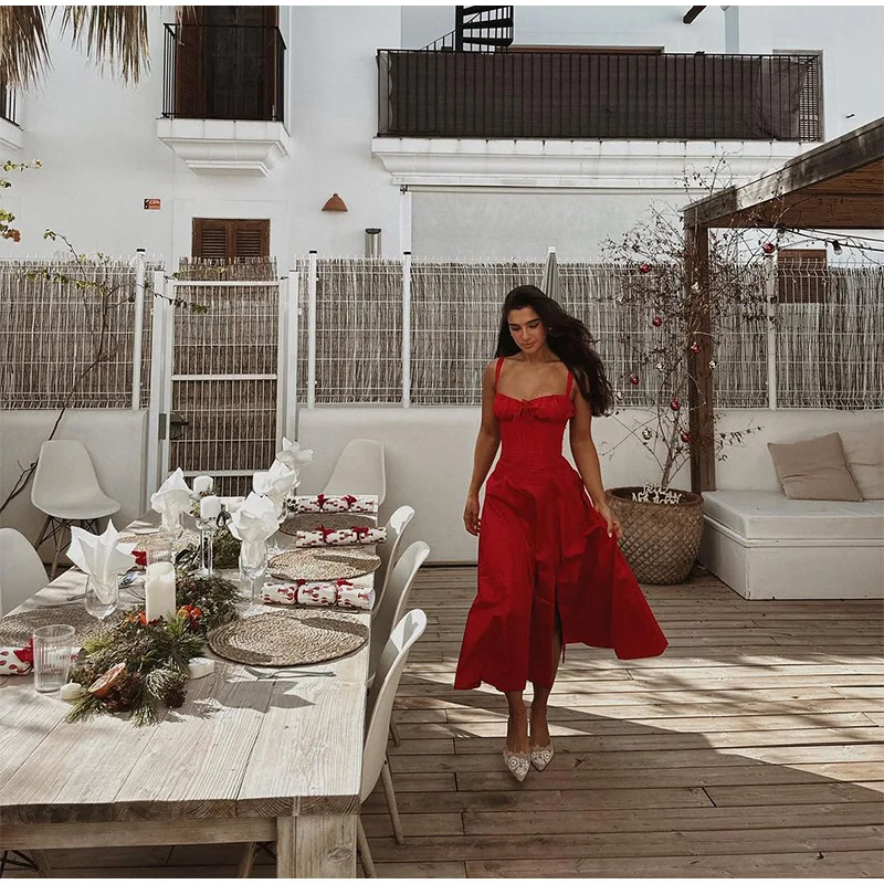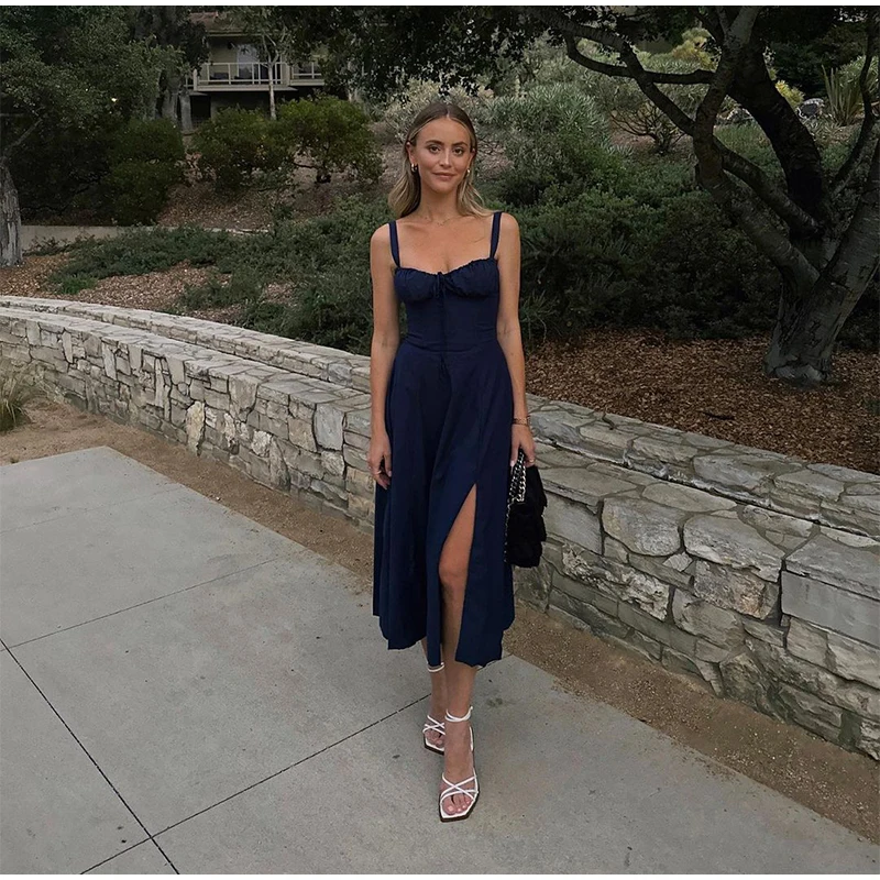 Victoria’s Vogue Women Elegant Sleeveless Sling Midi Dress Fashion Backless Chest Wrapped Lace Up Dresses 2024 Lady Slim Split Holiday Robes