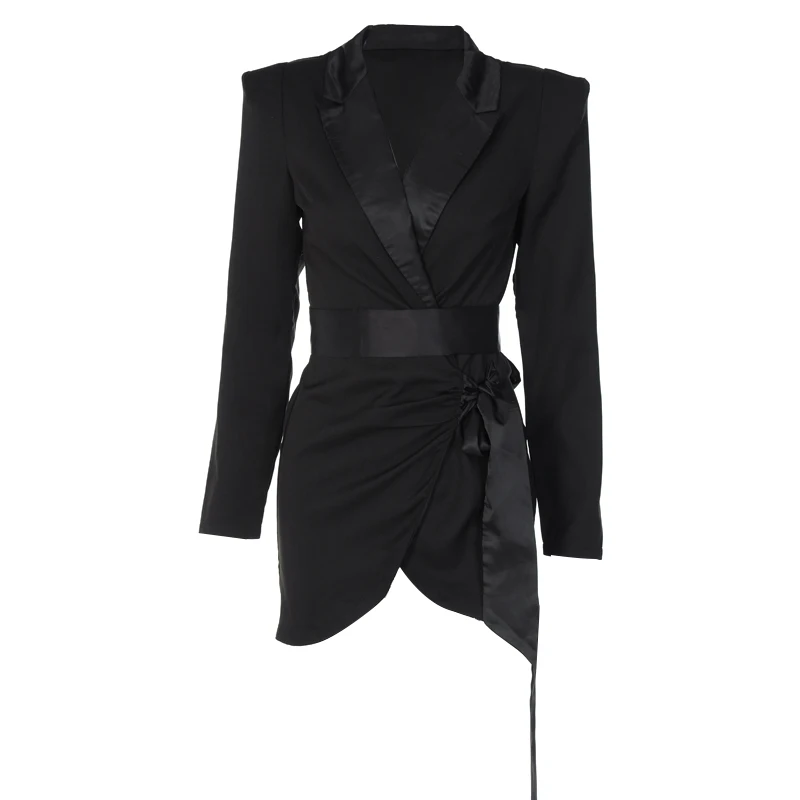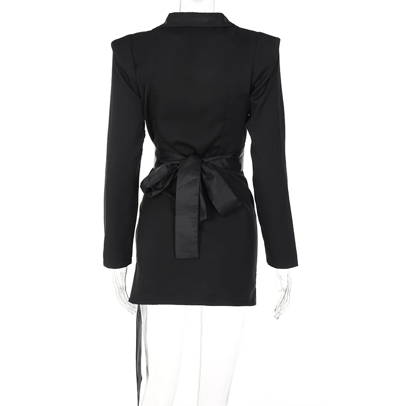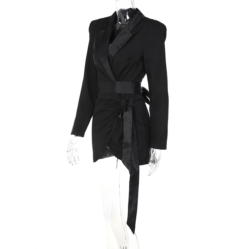 victoria’s vogue Women Fall Fashion Bodycon Solid Long Sleeve With Shoulder Pads Revealing String Belt Mini Dress 2022 Streetwear Y2K