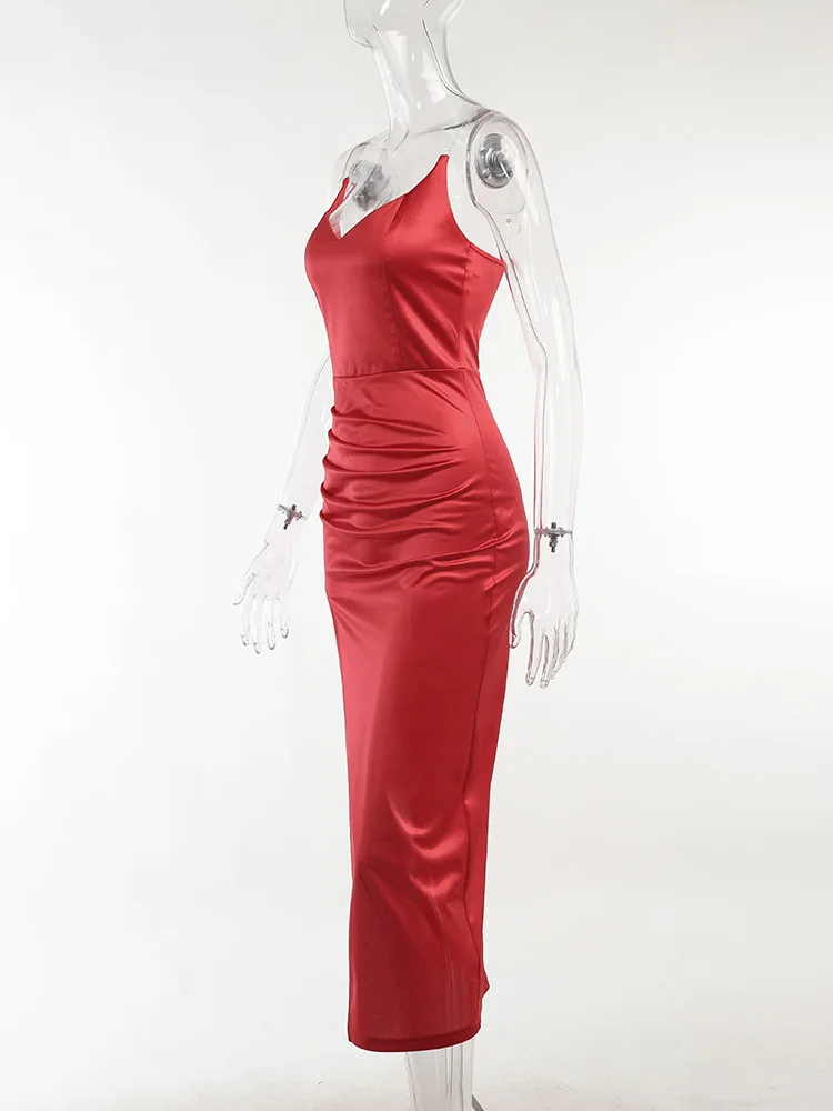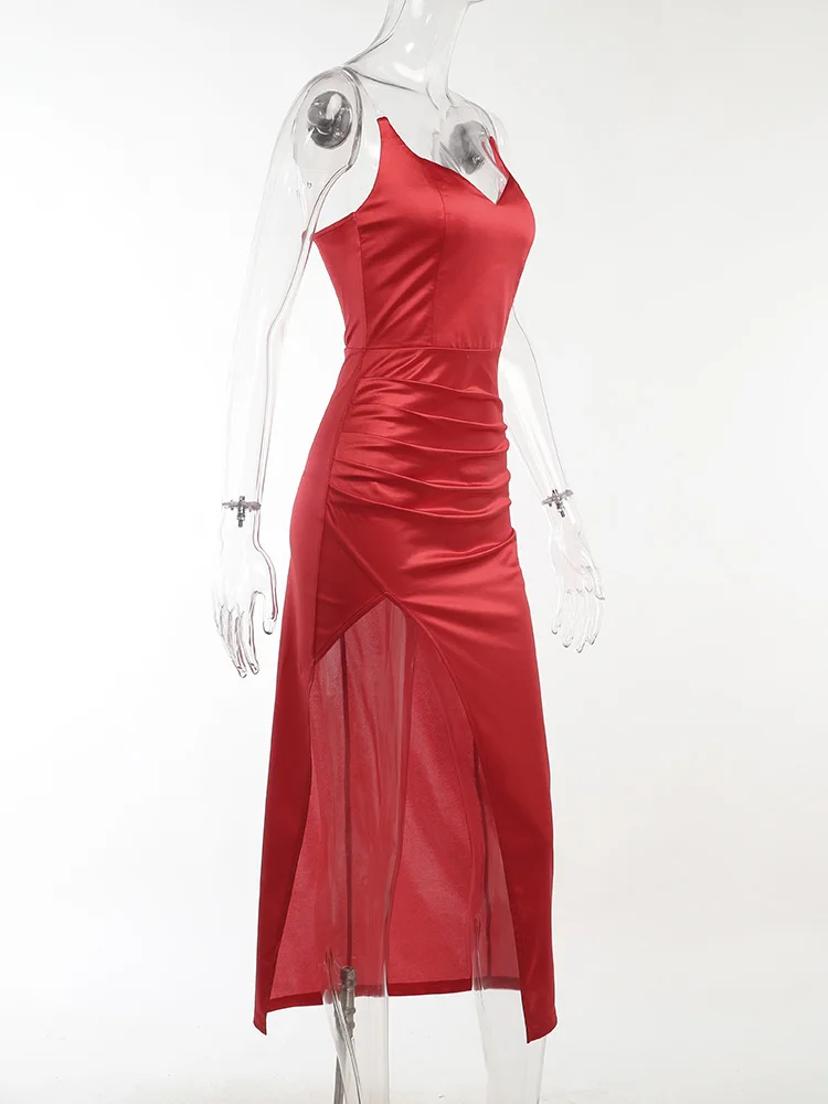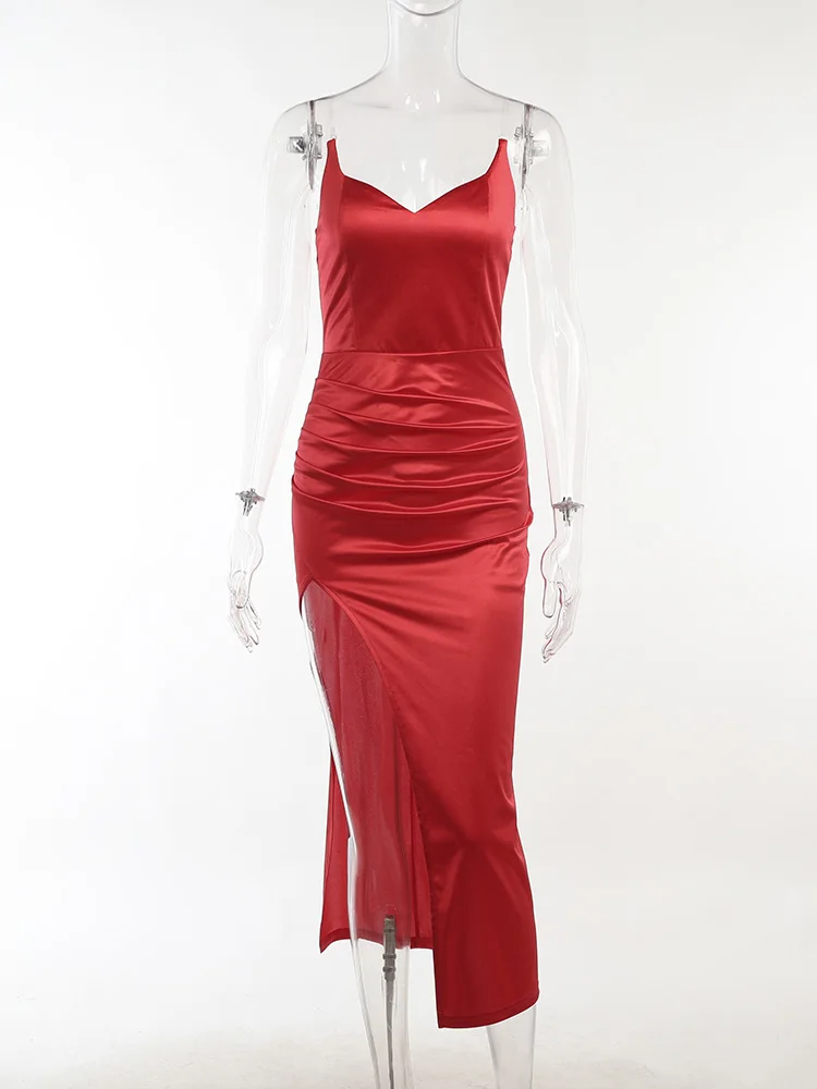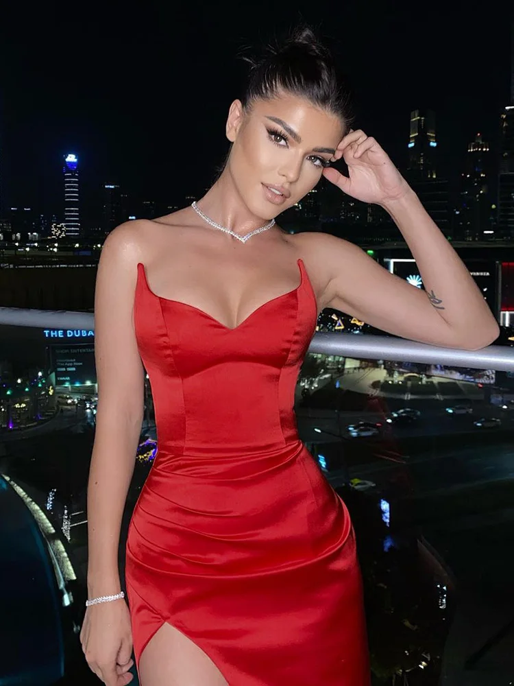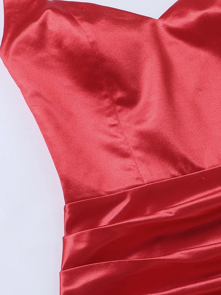 victoria’s vogue Women Gala Dress Partywear Ruched High Split Silk Evening Sexy Elegant Sleeveless Transparent Strap Floor Dresses