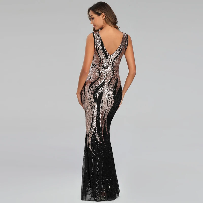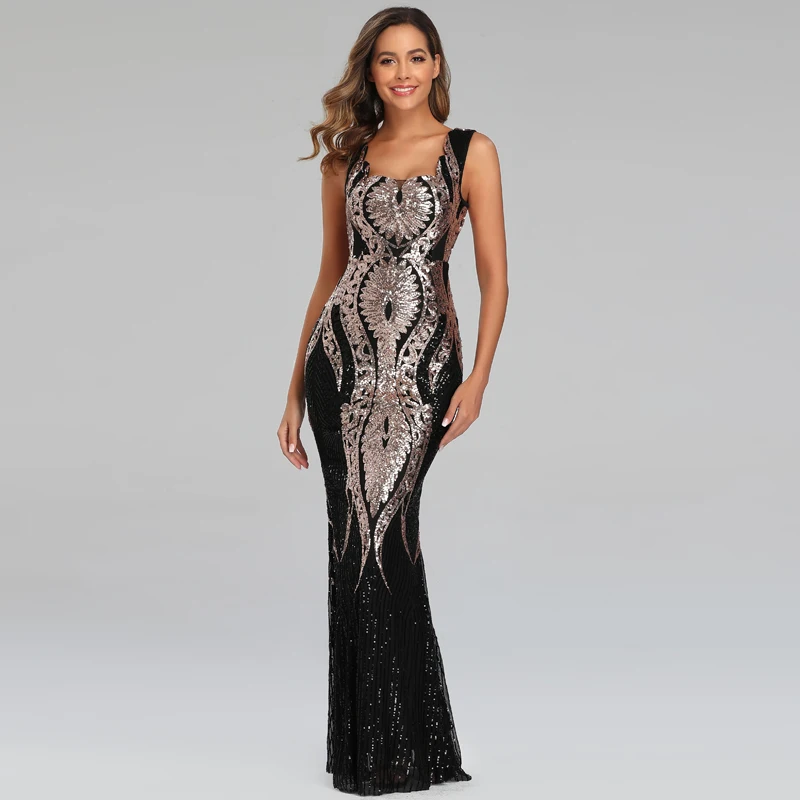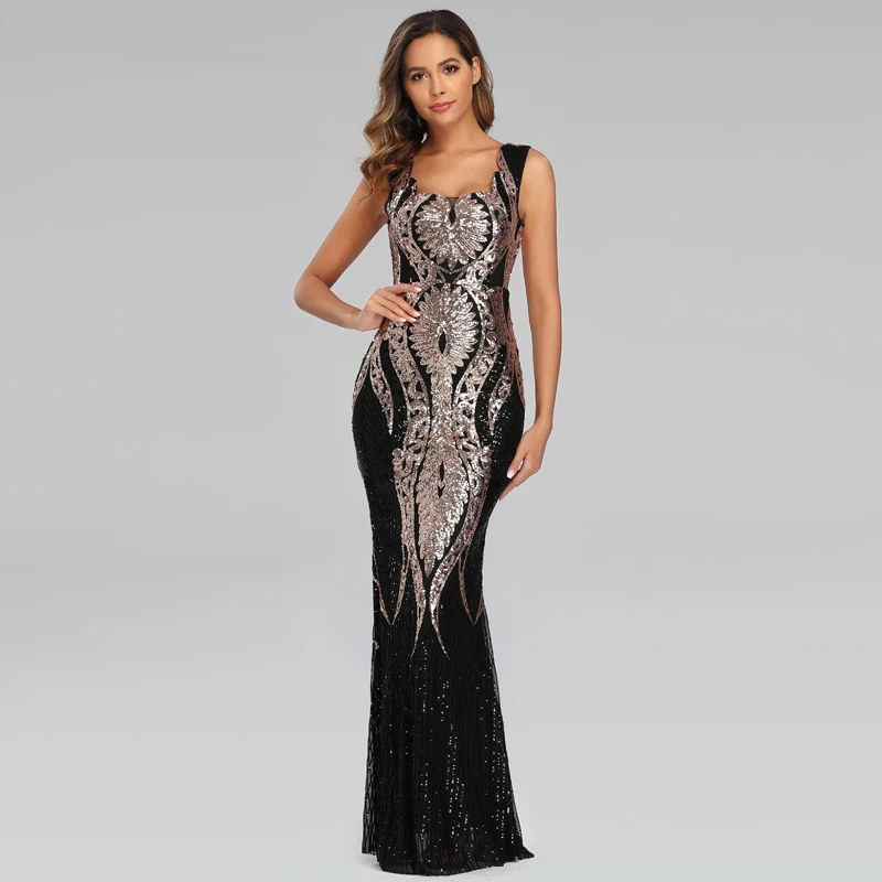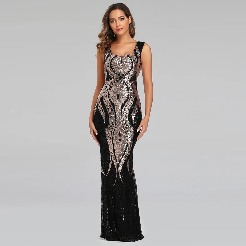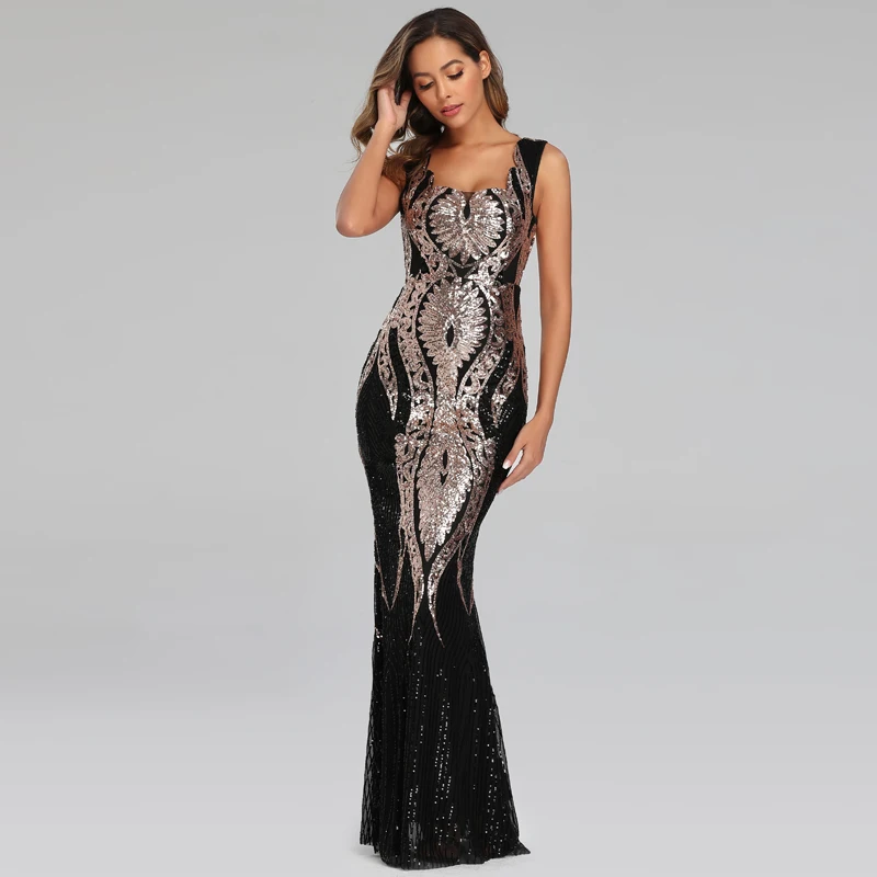victoria’s vogue Women Gold Sequin Party Maxi Dress Sleeveless Formal Evening Dress