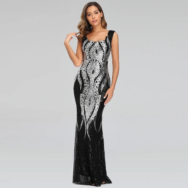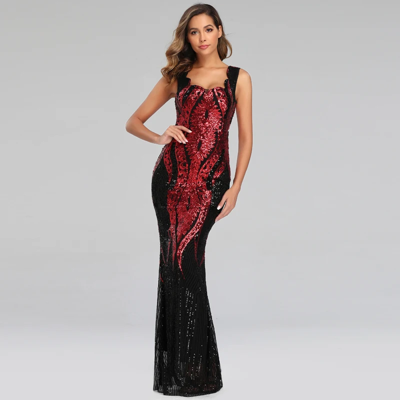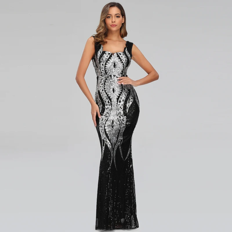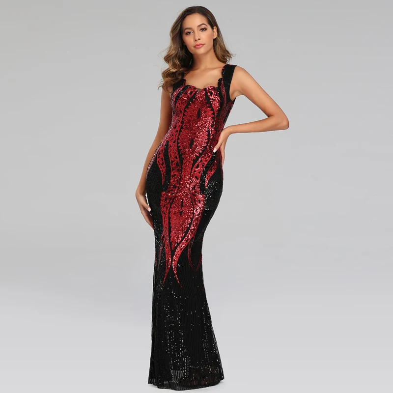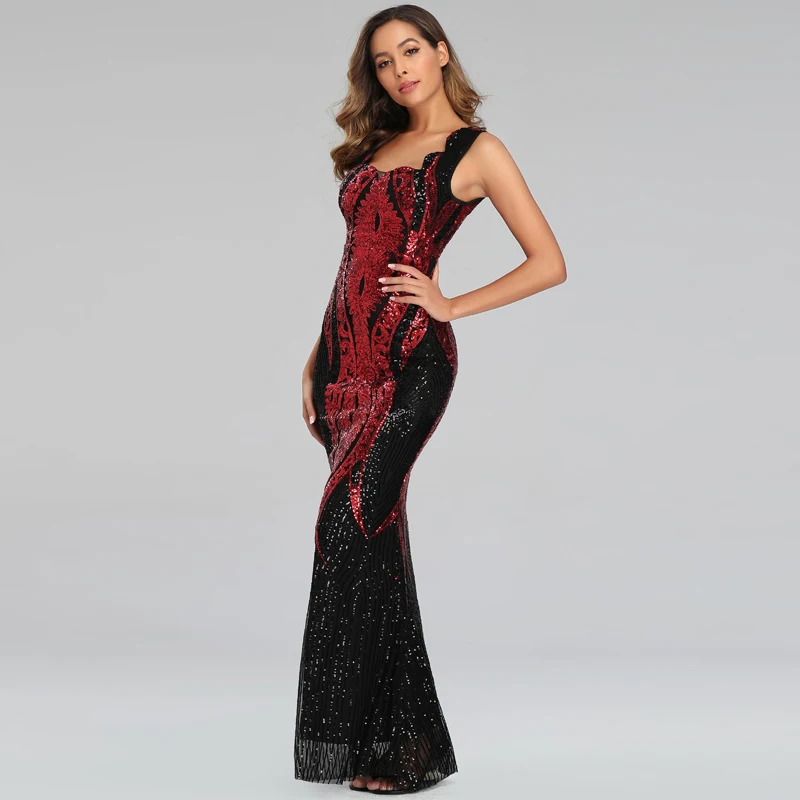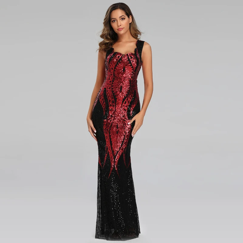 victoria’s vogue Women Gold Sequin Party Maxi Dress Sleeveless Formal Evening Dress