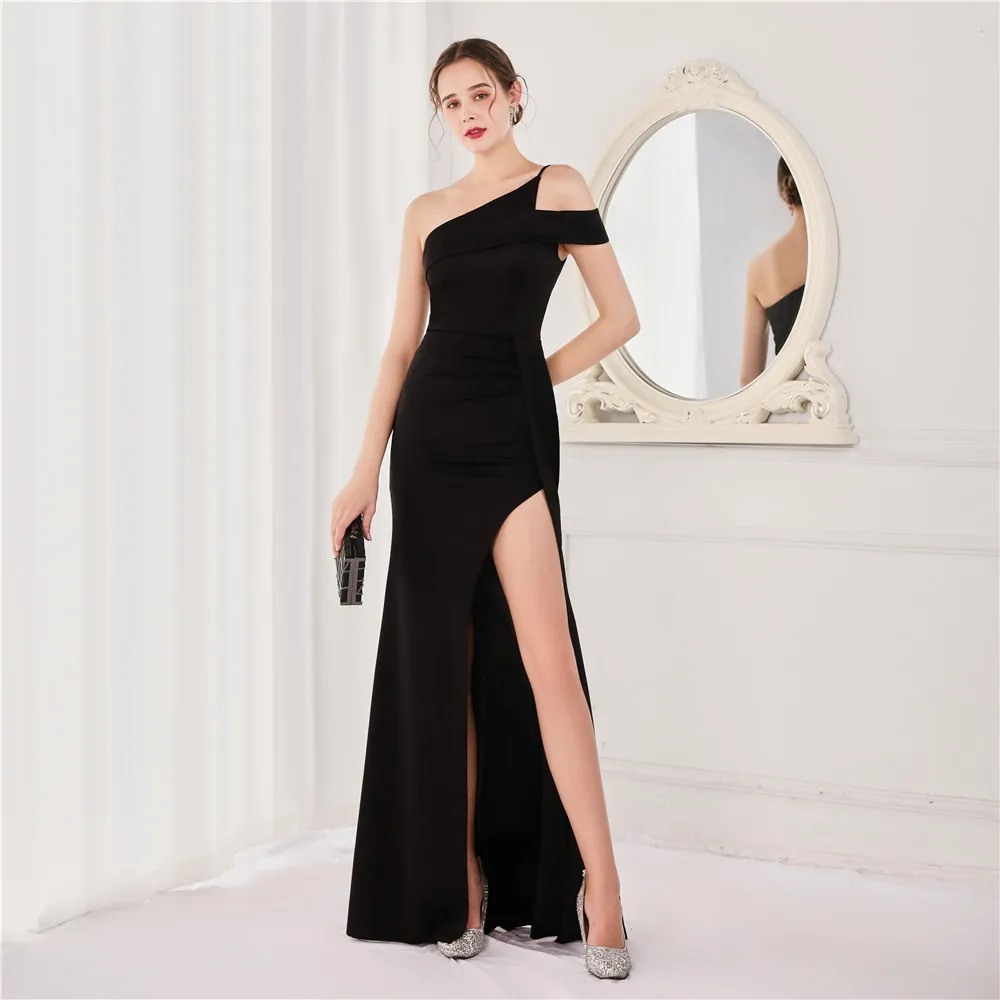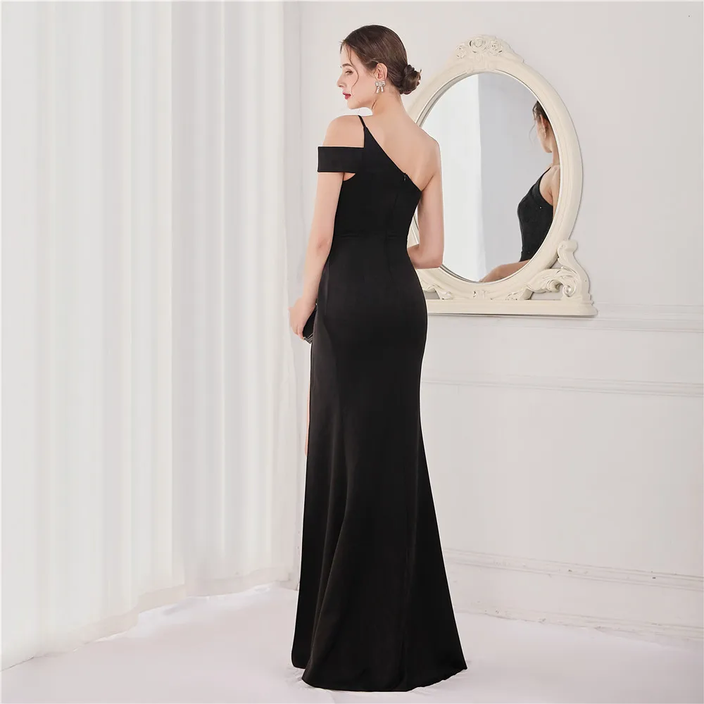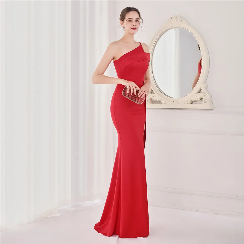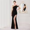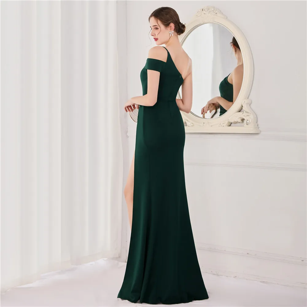 victoria’s vogue Women Green Dress 2022 New One Shoulder Soft Satin Party Maxi Dress Sexy Slit Evening Dress Long Prom Dress