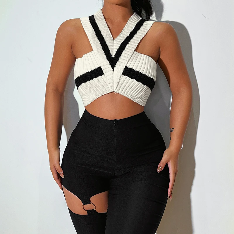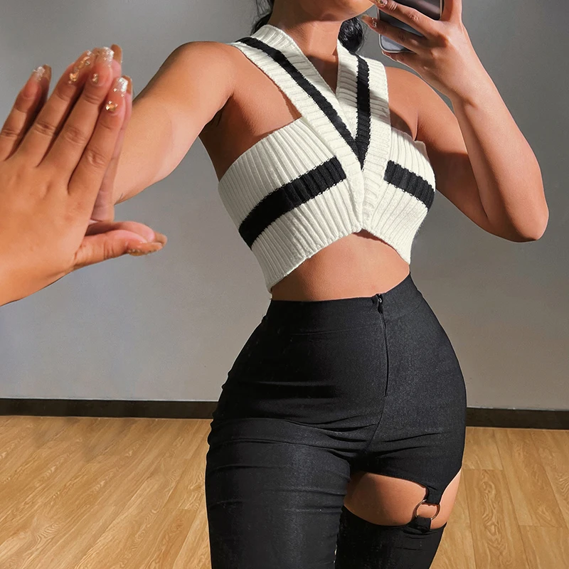 victoria’s vogue Women Halter Sleeveless Patchwork Sexy Tube Top Club Beach Body 2022 Summer Holiday Revealing