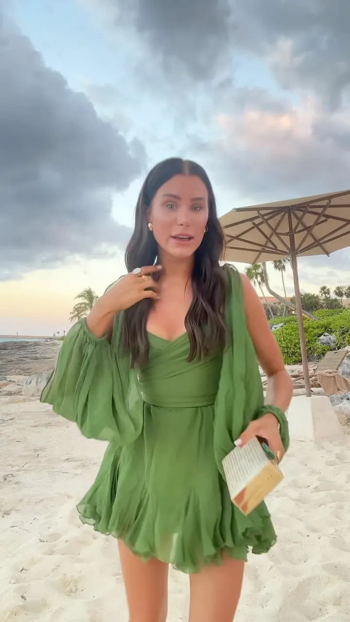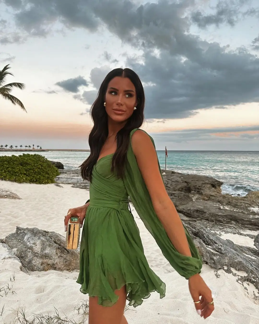 Victoria’s Vogue Women Hollow Out Lantern Sleeve Mini Dress Sexy Solid V Neck Green Mesh Short Vestidos Spring Summer Lady Holiday Dresses