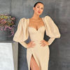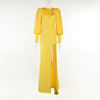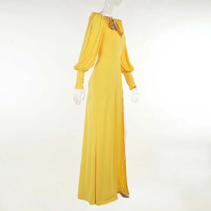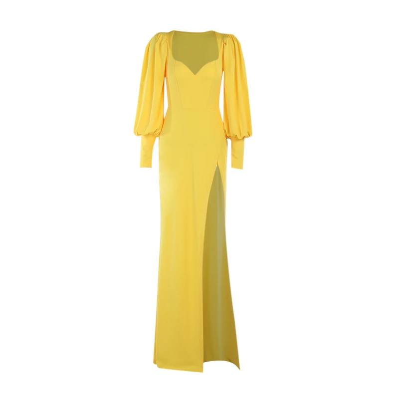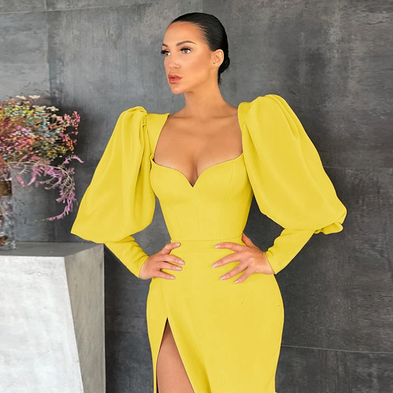 victoria’s vogue Women Lantern Sleeve Dresses High Split Square Collar Autumn 2021 Vintage Shrug Chic Party Wear Elegant Female Dresses