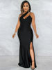 victoria’s vogue Women Long Dress Sexy Party Event Occasion Female Sleevelesss Slit Shiny Satin Celebrate Prom Female Night Club Date Out Robes