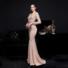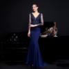 victoria’s vogue Women Long Dress V-neck Appliques Full Sleeve Evening Dress See through Elegant Party Dress