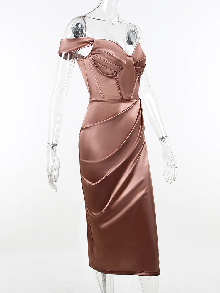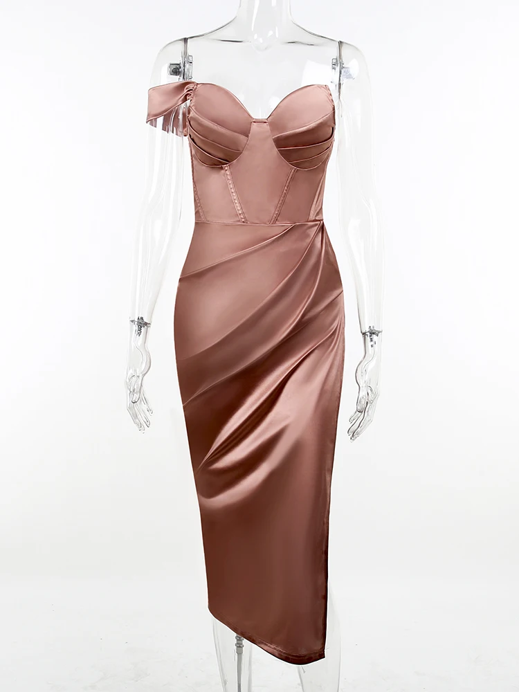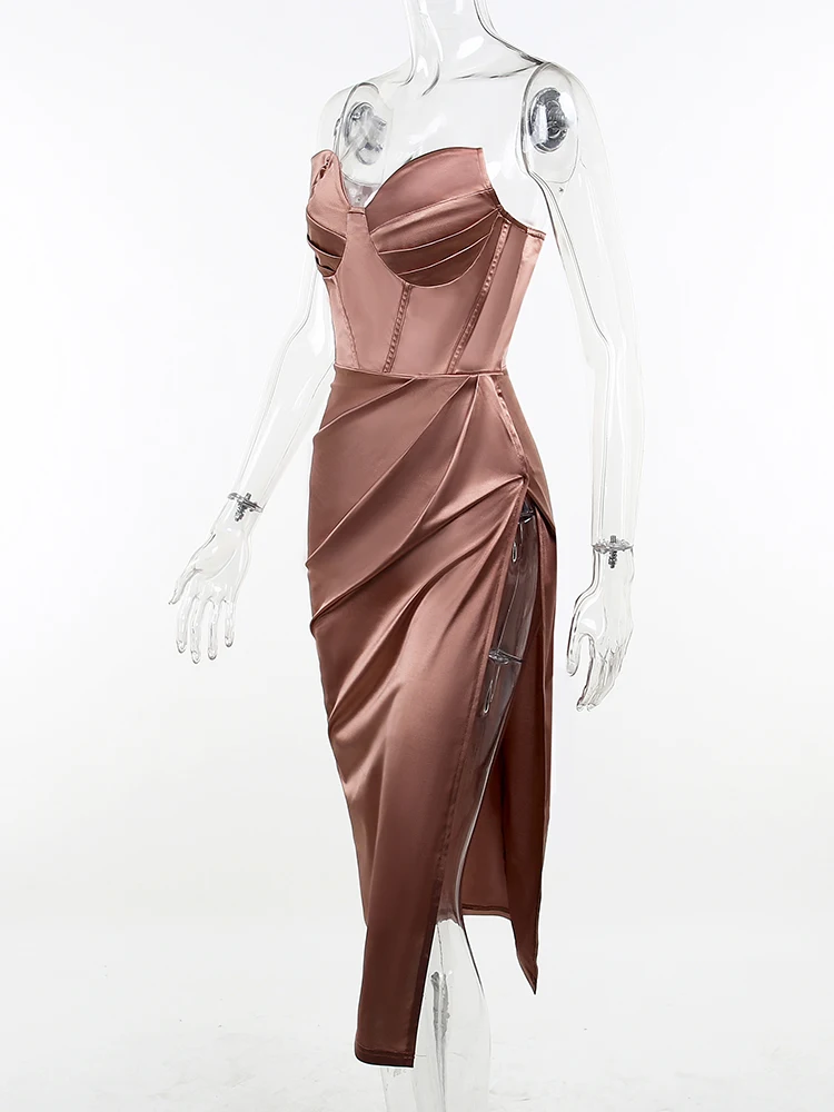 victoria’s vogue Women Midi Dress High Split Folds Clubwear Corset Bodycon Sexy Night Party Womens Elegants Robe