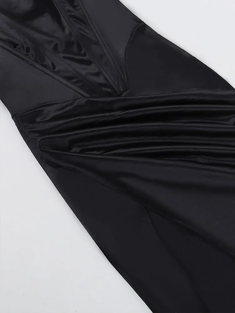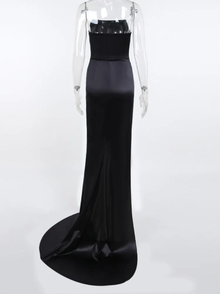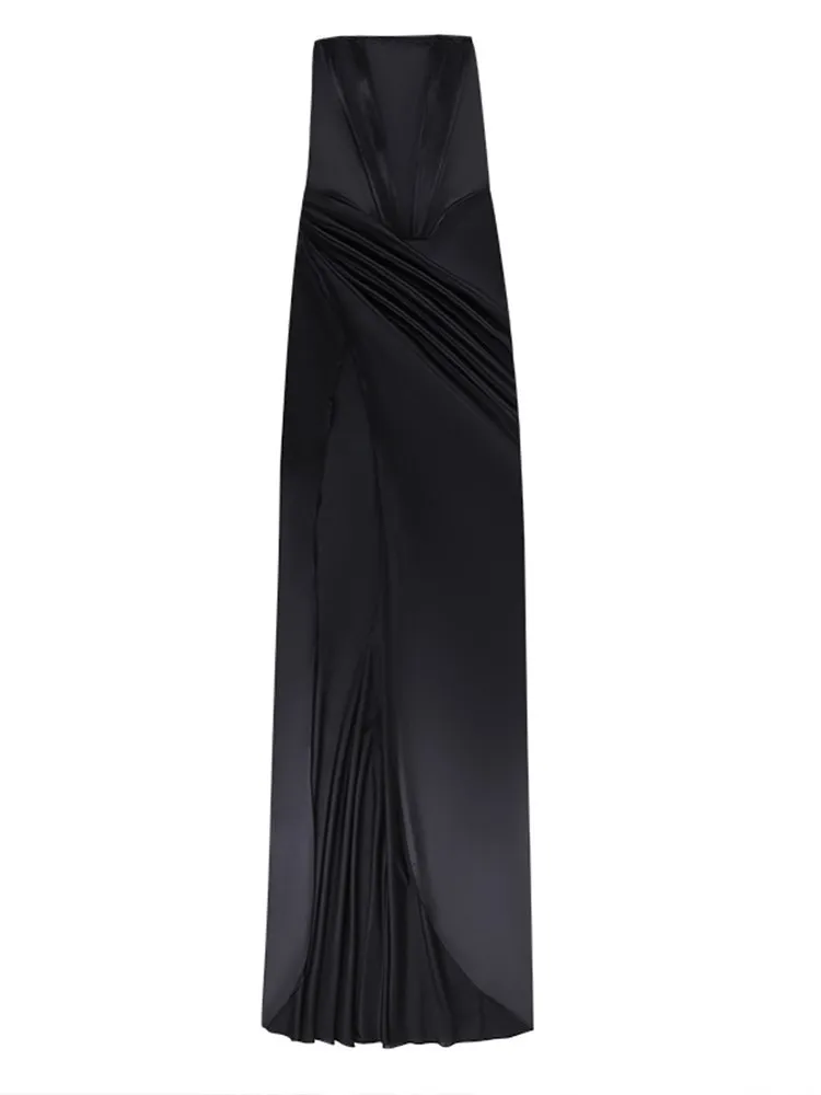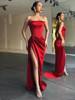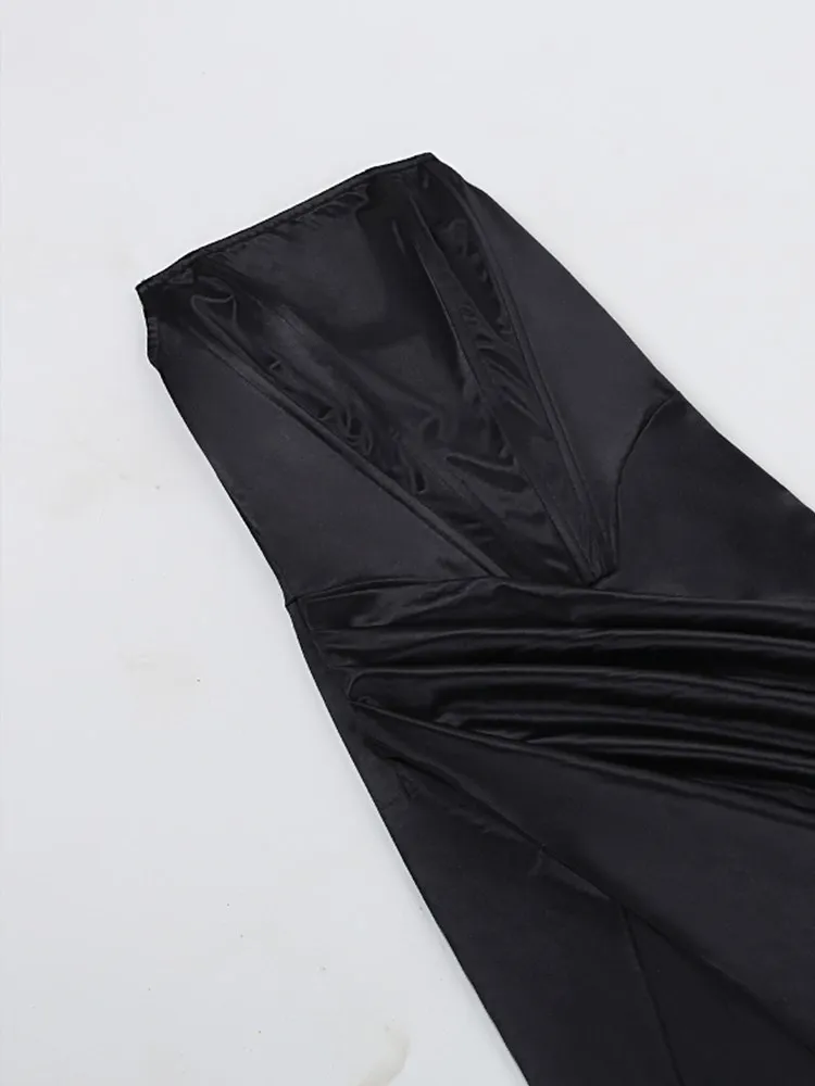 victoria’s vogue Women Midi Dress High Split Ruched Satin Corset Tube Elegant Sexy Vintage Fashion Asymmetric Partywear Long Dress 2021
