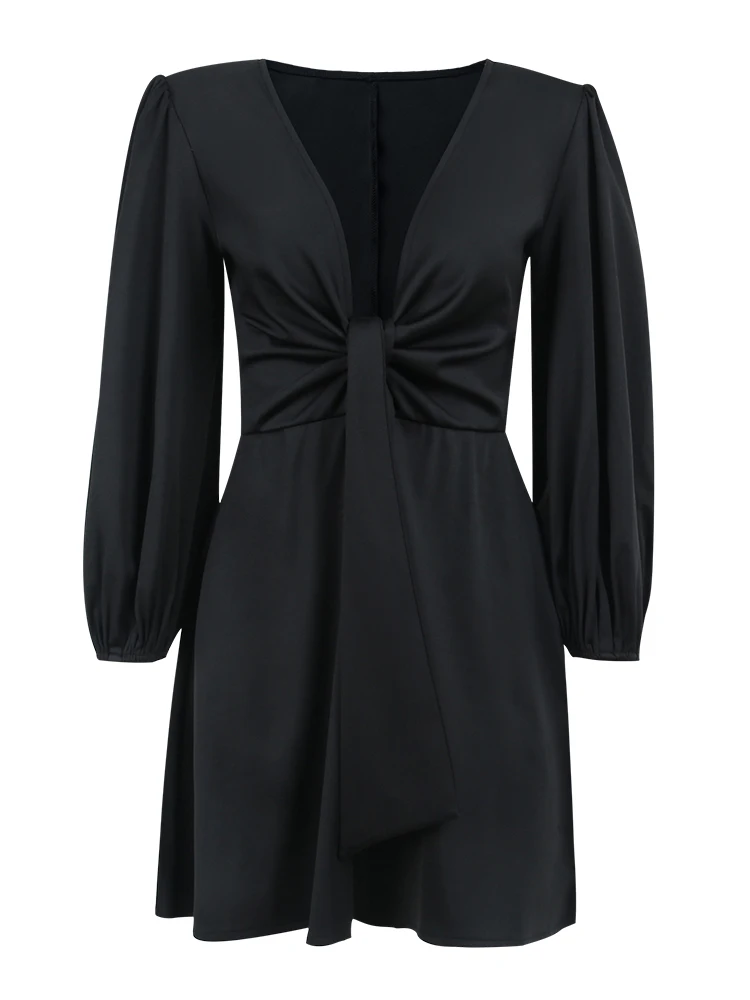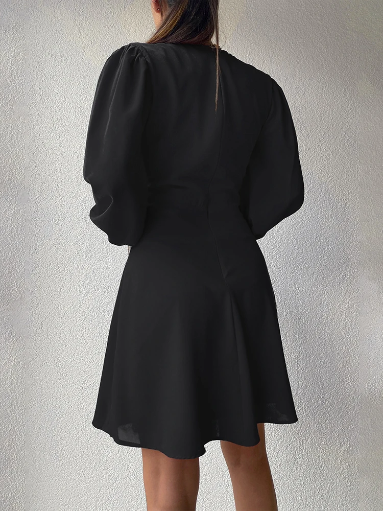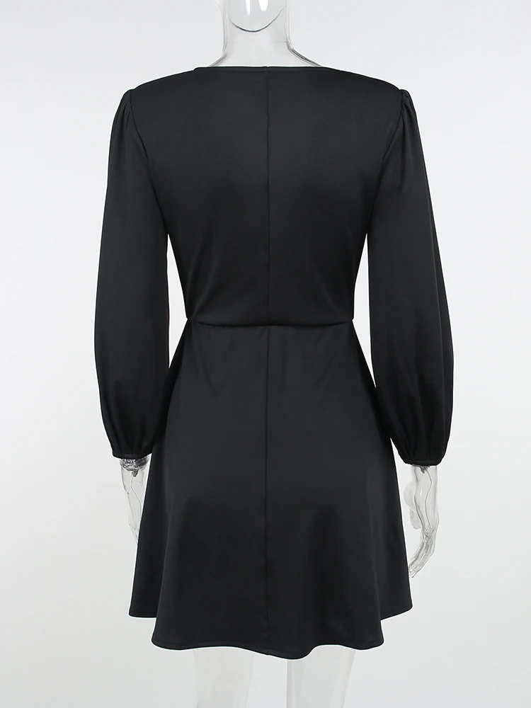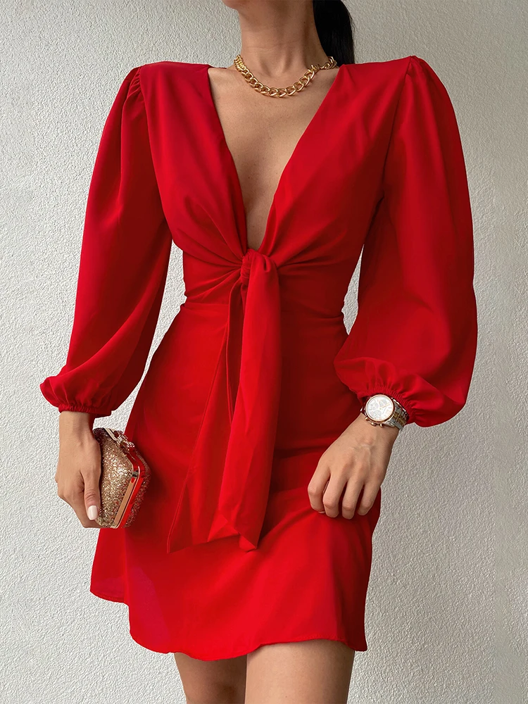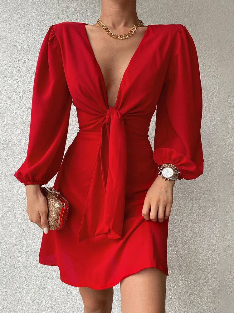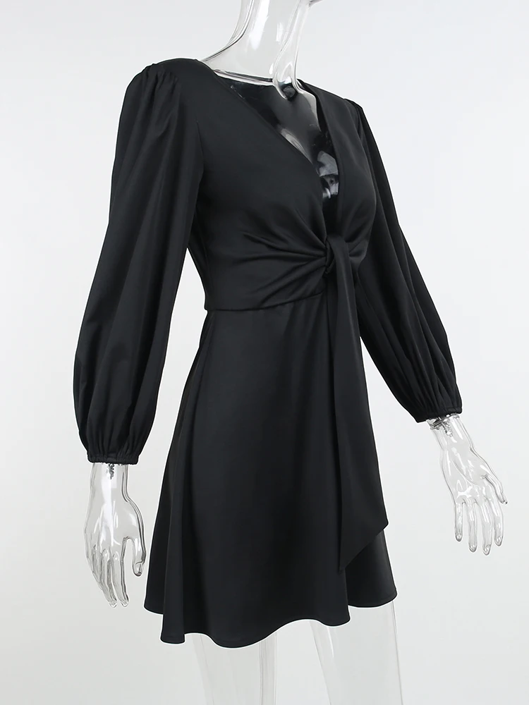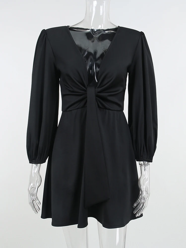 victoria’s vogue Women Mini Dress V Neck Lantern Sleeve Sexy Bandage Folds Aesthetic Folds Autumn Chic Partywear Elegant Vestidos