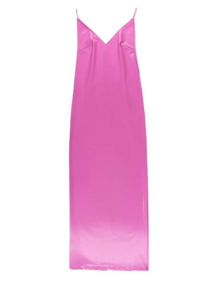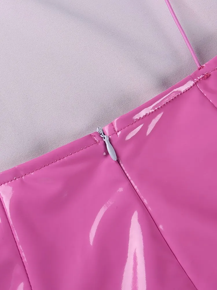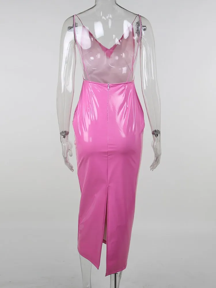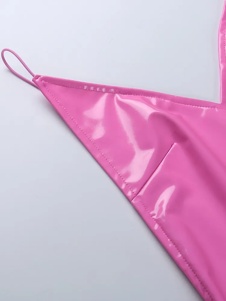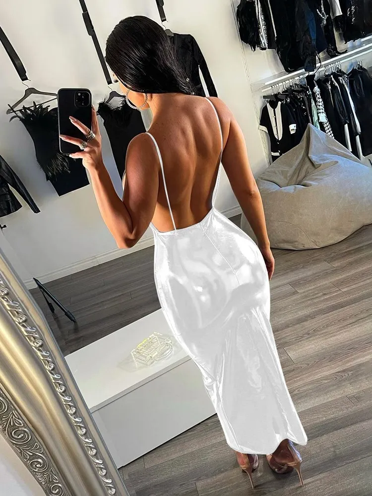 victoria’s vogue Women Party Dress Faux PU Leather V Neck Backless Sexy Fashion Bodycon Spaghetti Strap Zipper Clubwear Solid Dresses