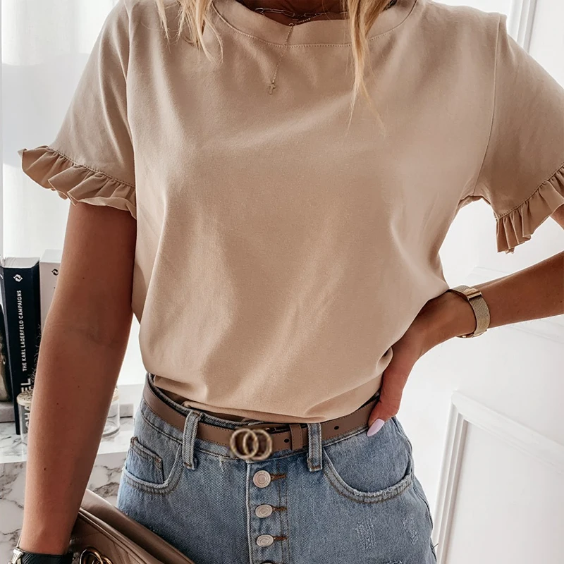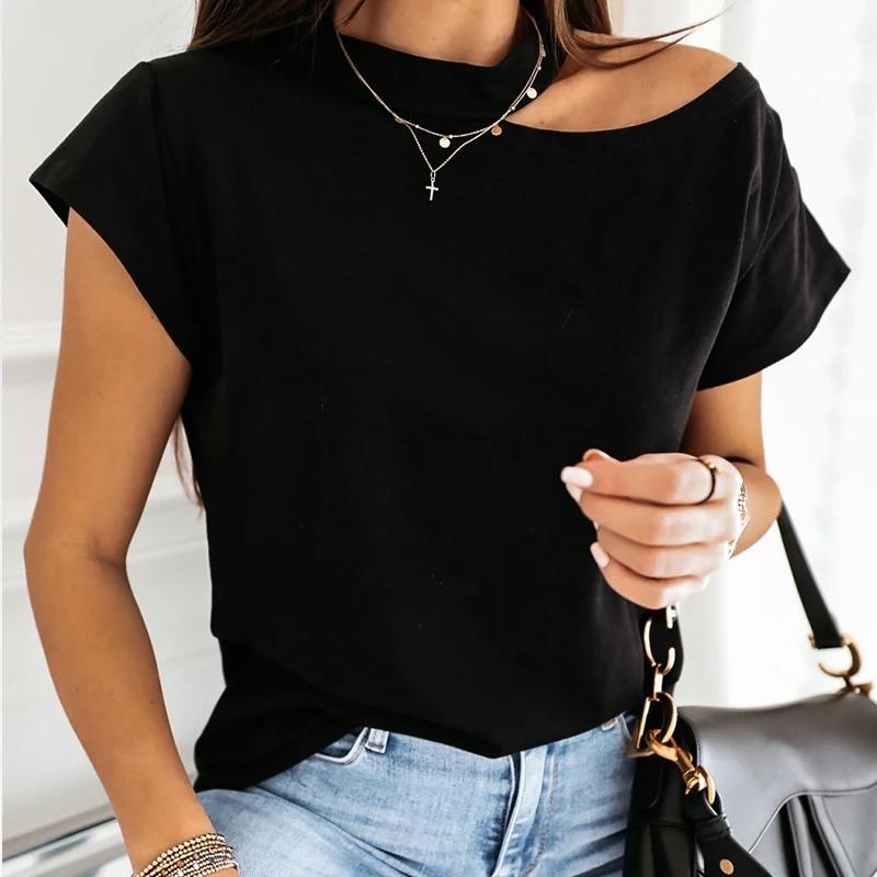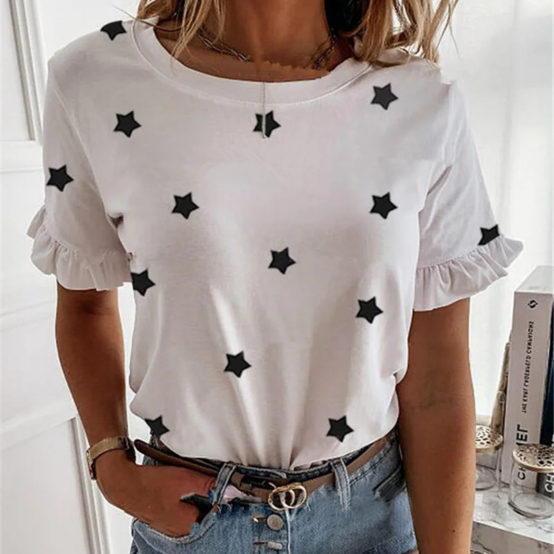 victoria’s vogue Women printed short sleeve round neck Shirt top Holiday beach summer style tops Cute square elegant solid slim shirts