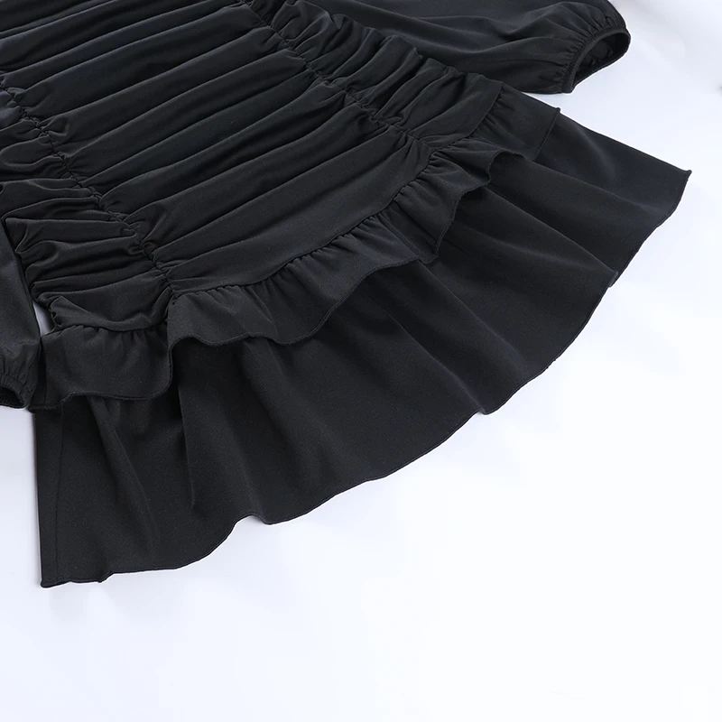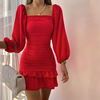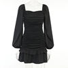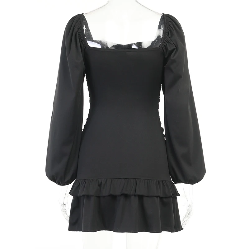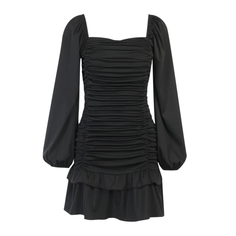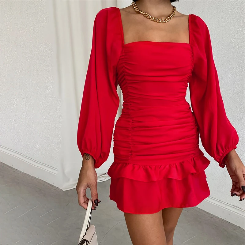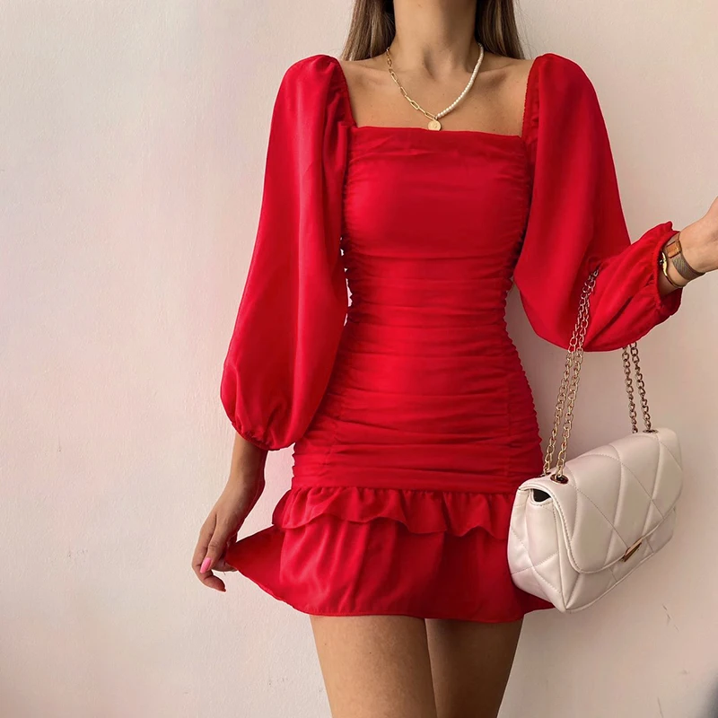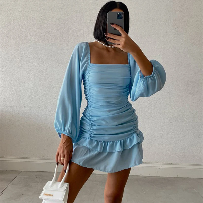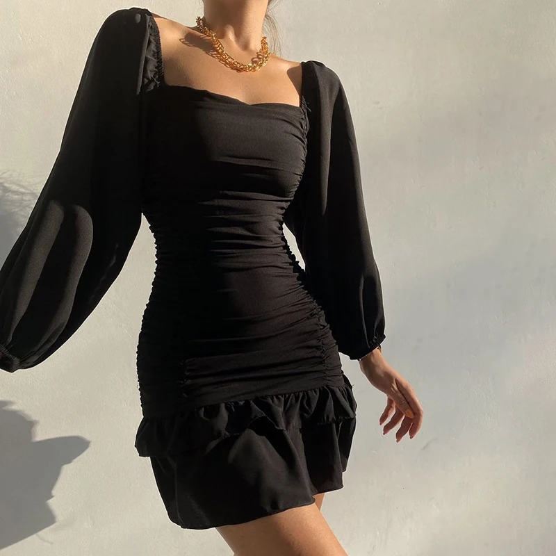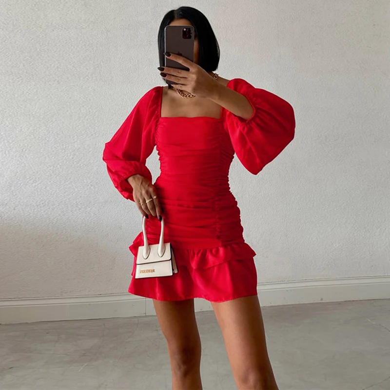 victoria’s vogue Women Puff Sleeve Mini Dress Sexy Ruffle Aesthetic Square Collar Folds Autumn Bodycon Clubwear Party Elegant Vestidos