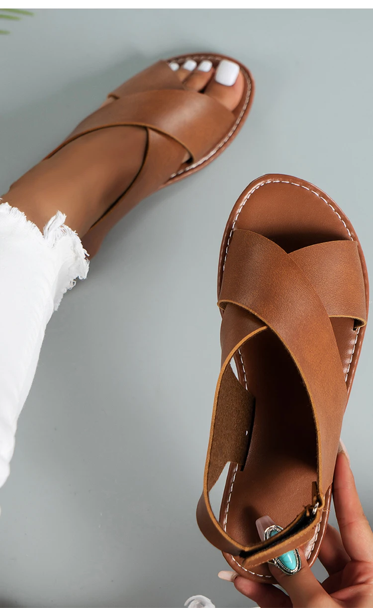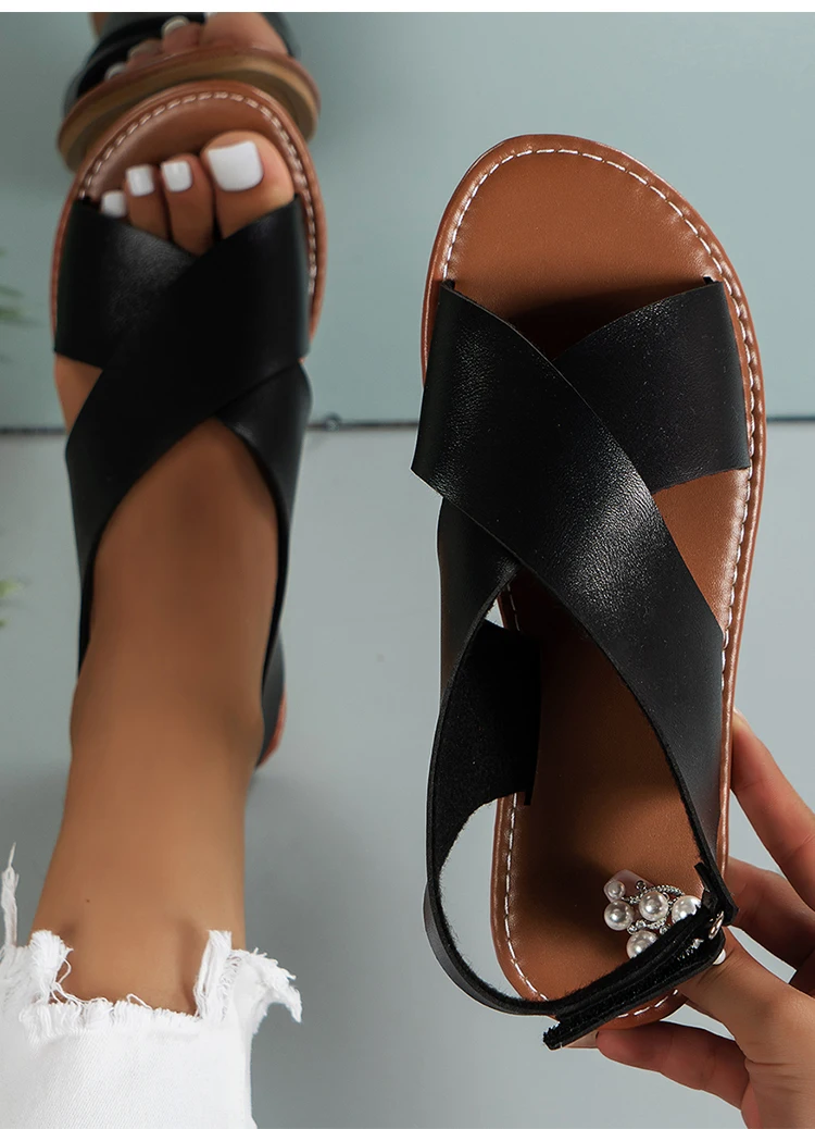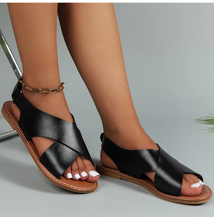 Victoria’s Vogue Women Sandals 2024 Summer Sandals Shoes For Women Flat Sandals Elegant Women’s Summer Footwear Soft PU Leather Sandalias Mujer