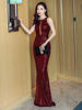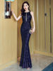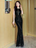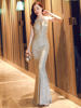 victoria’s vogue Women See through Sexy Party Maxi Dress Silver Sequin Evening Dress