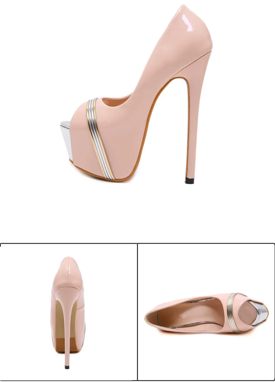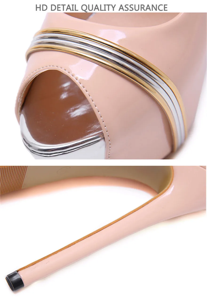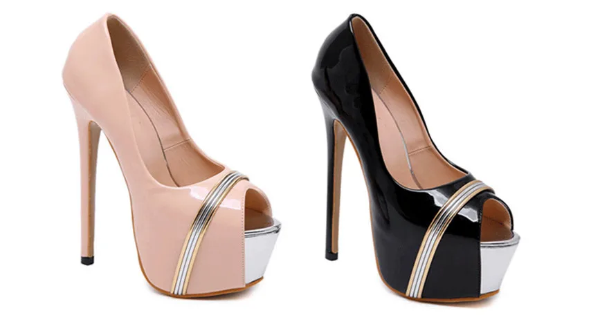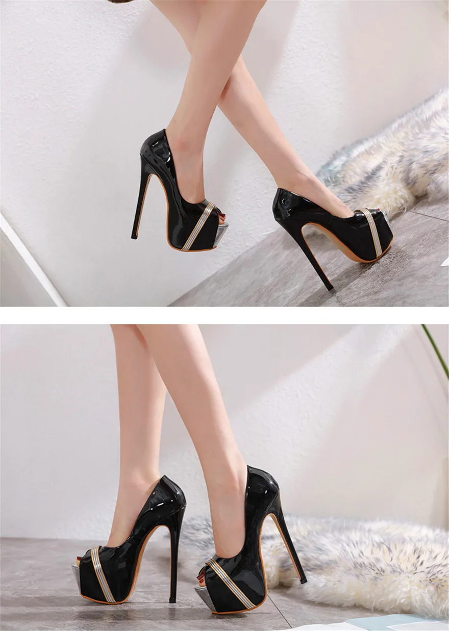 Victoria’s Vogue Women Sexy 16cm Super High Heels Shoes 2021 Spring Party Peep Toe Patent Leather Pumps Platform Sweet Woman Stiletto Dress Shoes