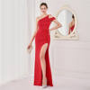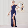 victoria’s vogue Women Sexy Slit Evening Dress 2022 New One Shoulder Soft Satin Navy Party Maxi Dress Long Prom Dress 19072