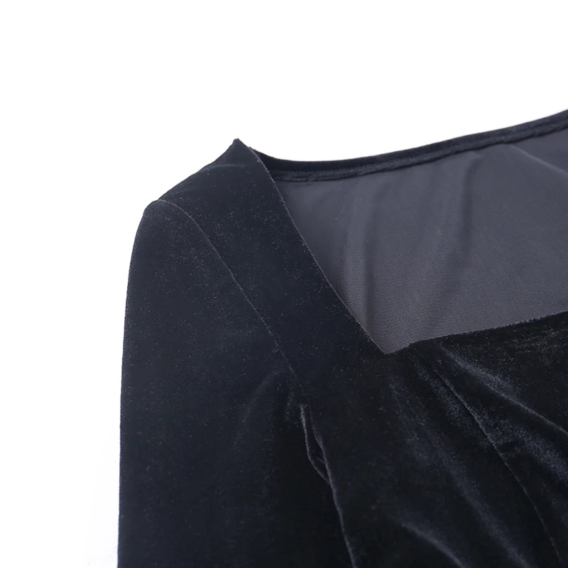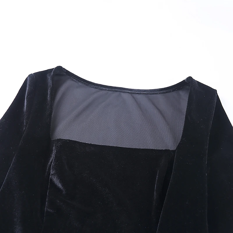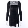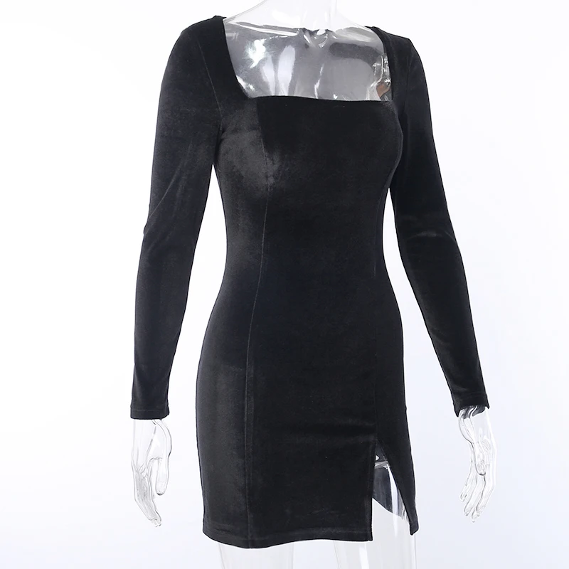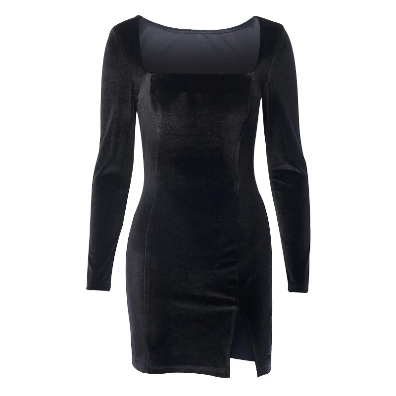 victoria’s vogue Women Solid Velvet Square Neck Slit Slim Sexy Mini Dress 2021 Autumn Bodycon Fashion Evening Club Y2K Elegant