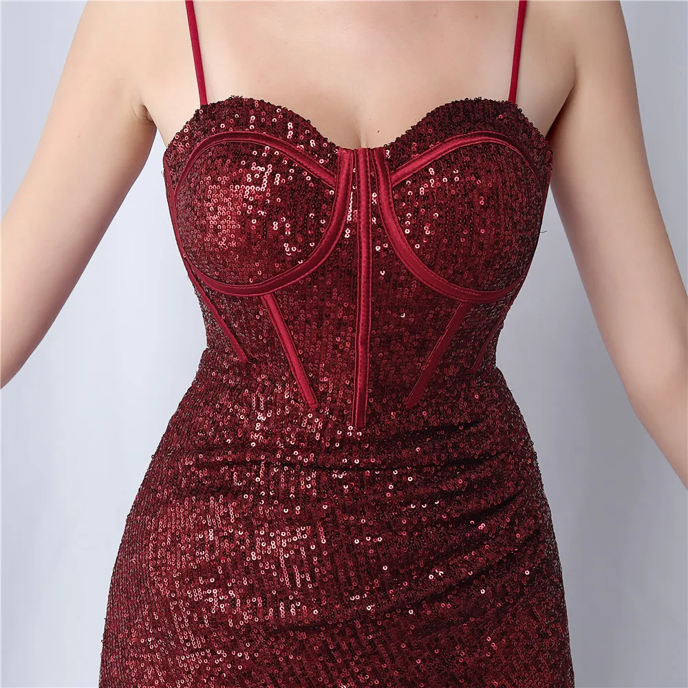 Victoria’s Vogue Women Strap Party Maxi Dress Sexy Blue Sequin Evening Dress Long Prom Dress