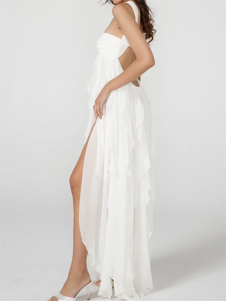 Victoria’s Vogue Women Y2K Long Tube Dress Sexy Strapless Off Shoulder Ruffle Tassel Dress Evening Party Halter Backless Vestidos 2023