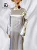 Victoria’s Vogue Womens Dresses 2024 New Long Dresses Fashion Simple Round Neck Satin Flare Sleeve Lace Up Slim Evening Party Dresses Sexy Dress