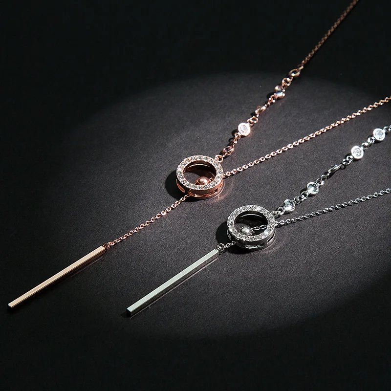 Victoria’s Vogue Women’s Fashion Long Sweater Chain Pendant Necklaces Shiny Micro Crystal Round Circle Drop Female Trendy Necklace Accessories