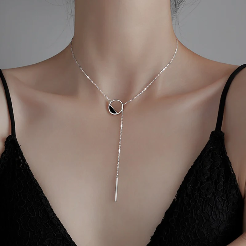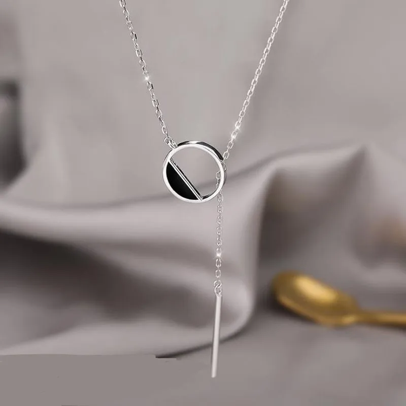 Victoria’s Vogue Women’s Fashion Simple Long Pendant Necklaces Black Hollow Round Circle Pendants Female Charming Chain Tassel Neck Accessories