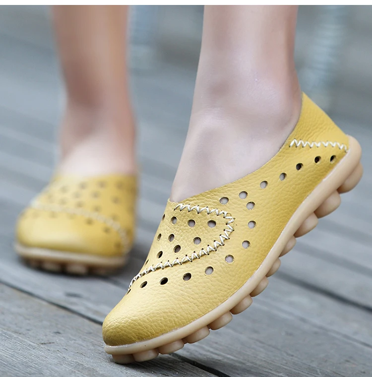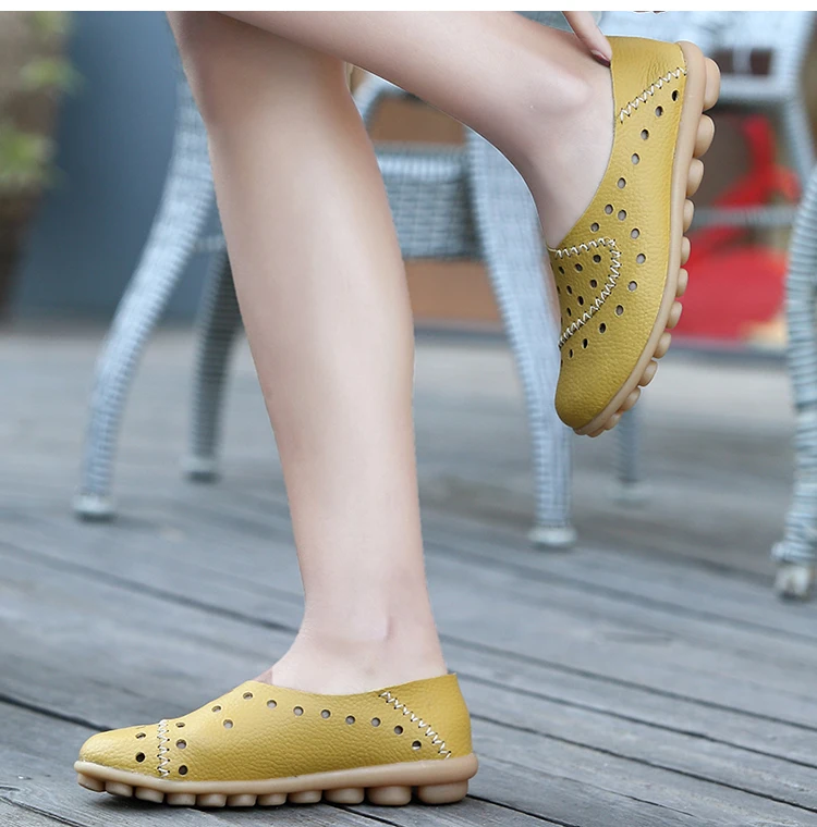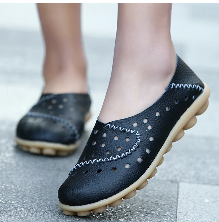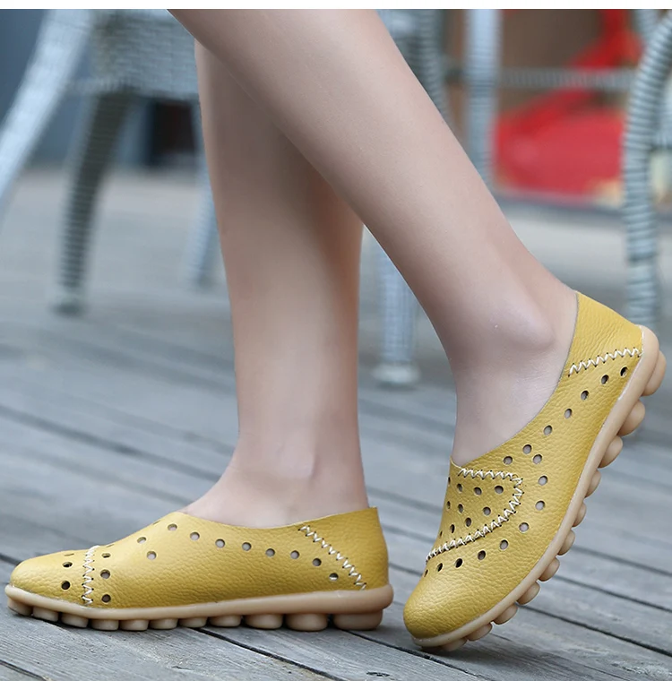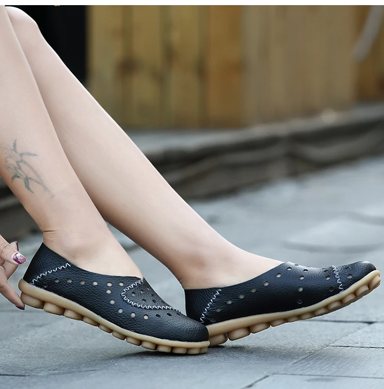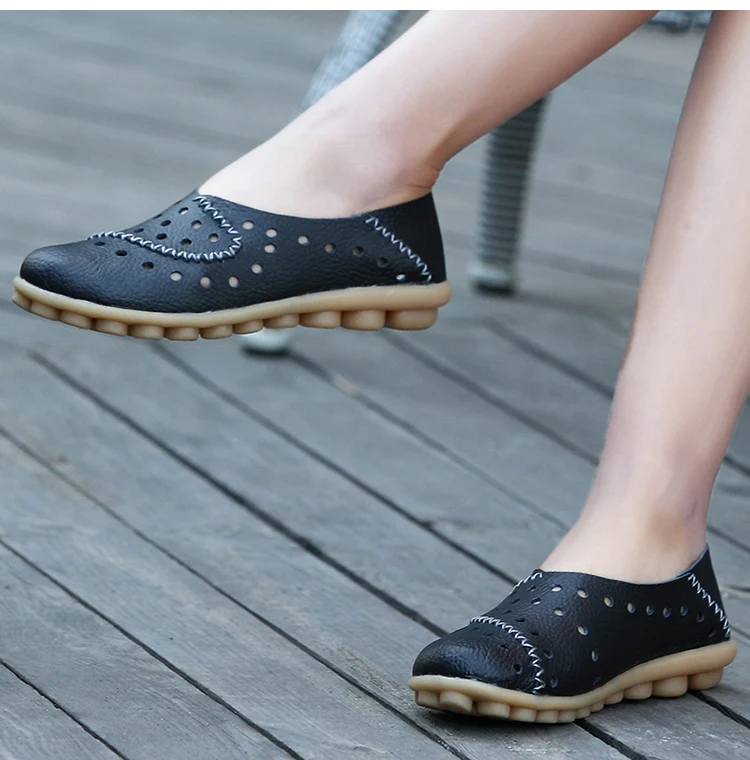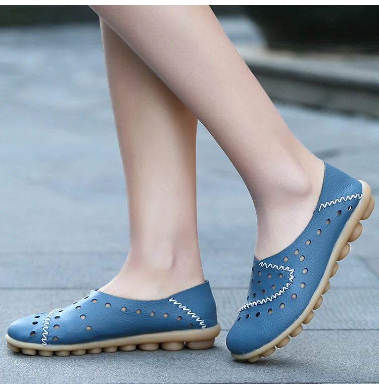 Women’s Sneakers Summer Fashion Casual Shoes Slip-On Small Hole Breathable Leather Sewing Falt Shoes For Women Zapatos De Mujer