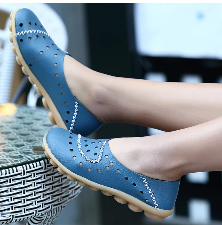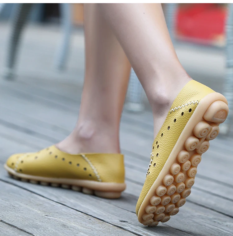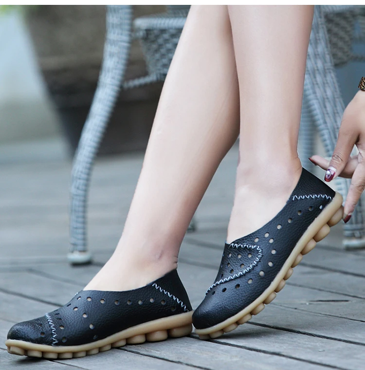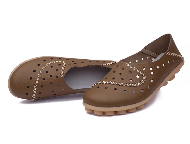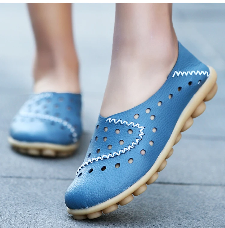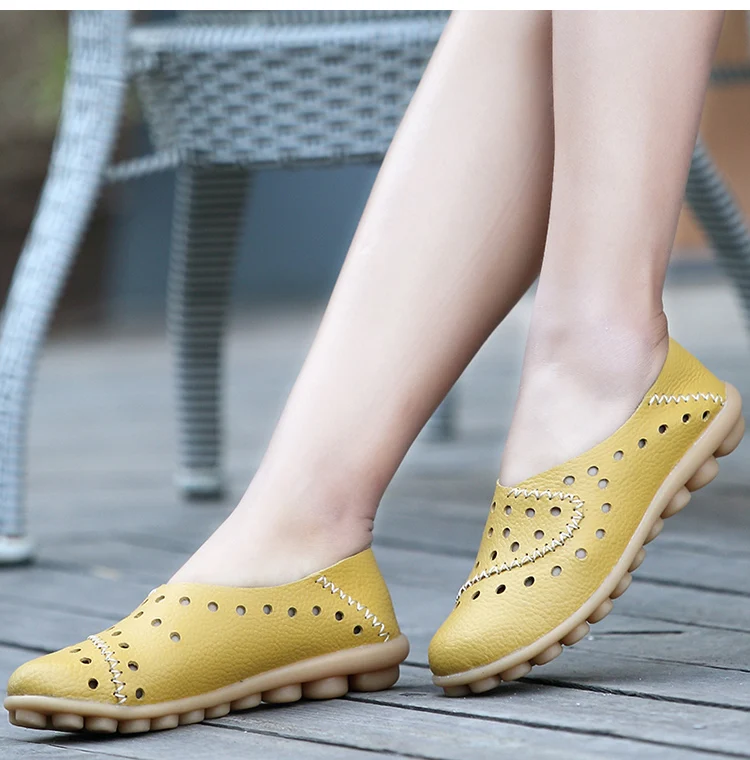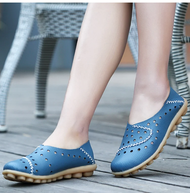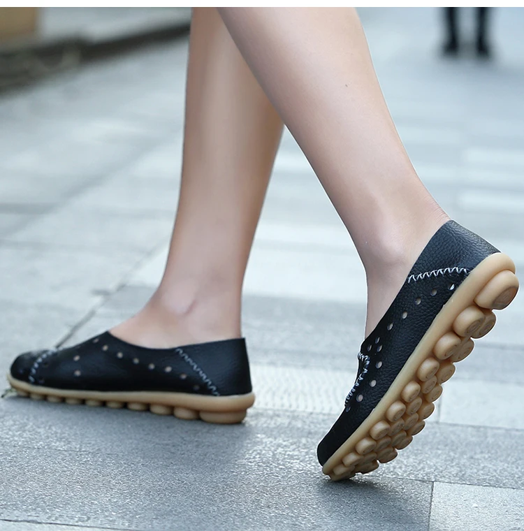 Women’s Sneakers Summer Fashion Casual Shoes Slip-On Small Hole Breathable Leather Sewing Falt Shoes For Women Zapatos De Mujer