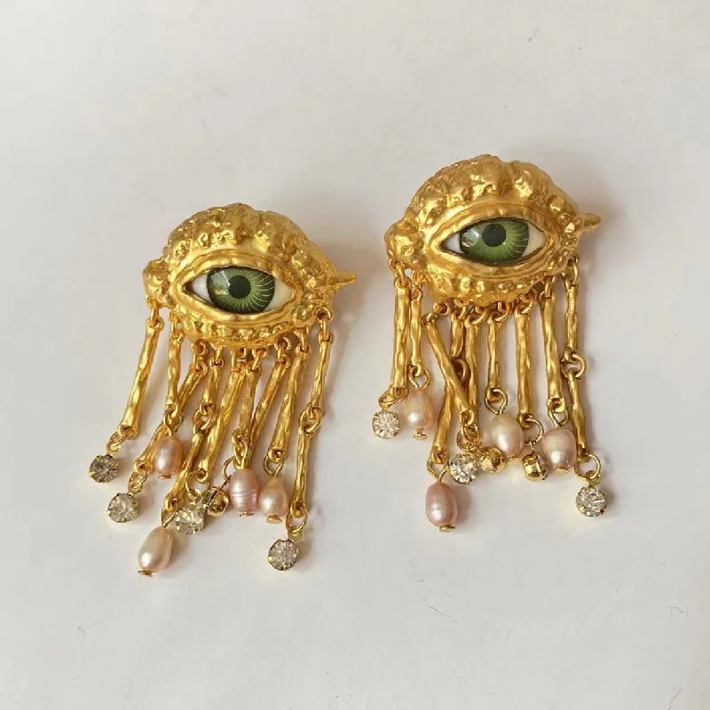 Victoria’s Vogue Women’s Vintage Eye Earring Exaggerated Trendy Earrings Baroque Style Imitated Pearl Jewellery Delicate Tassels Jewelry