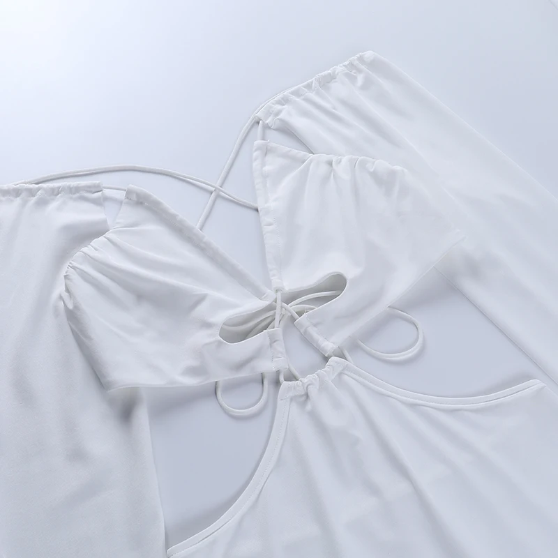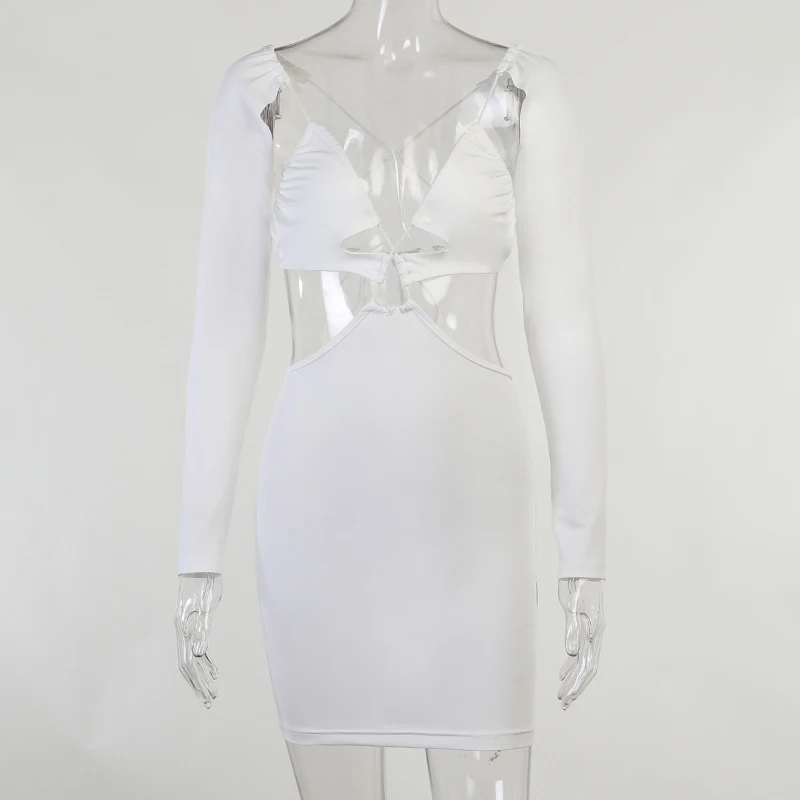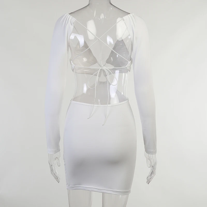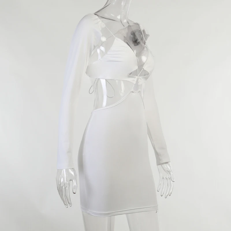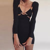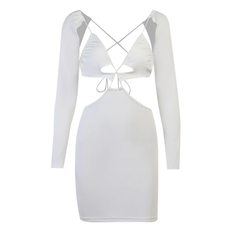 victoria’s vogue Wrap Hollow Out Strapdress Sexy Mini Dress Women Ripe Long Sleeve Summer Backless Bodycon Fashion Clubwear Party Dress