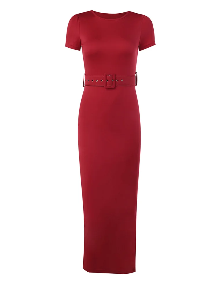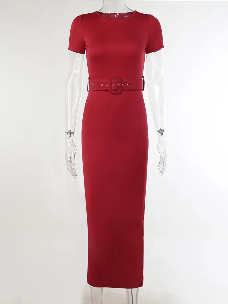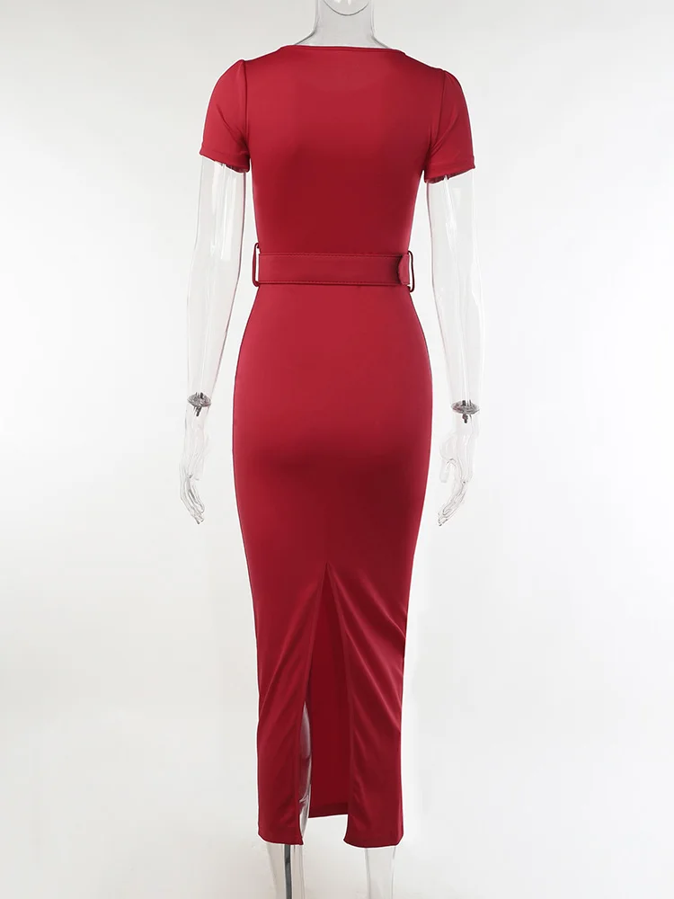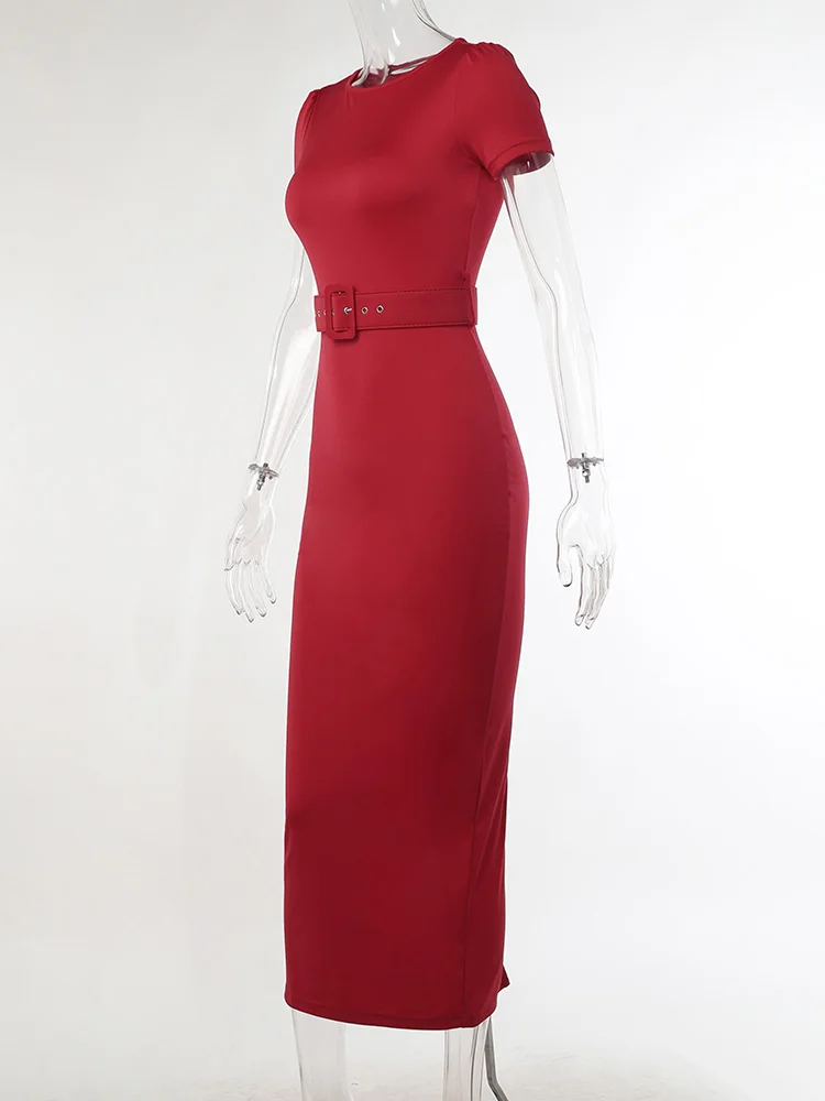 victoria’s vogue Y2K Midi Dresses Short Sleeve Split With Belt Summer Women Bodycon Elegant Party Night Clubwear Sexy Festival Clothing