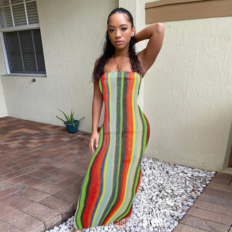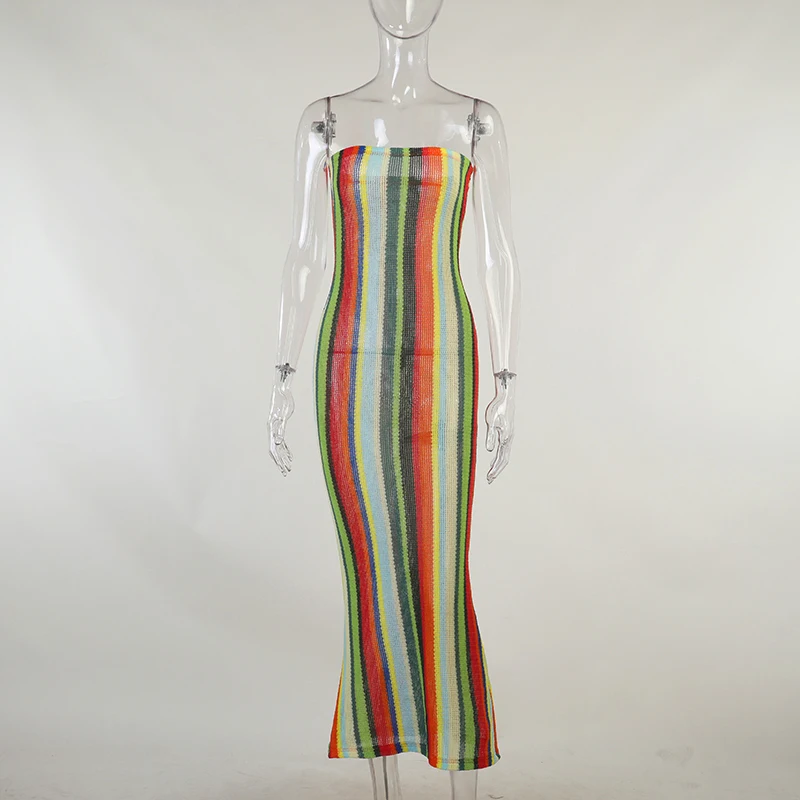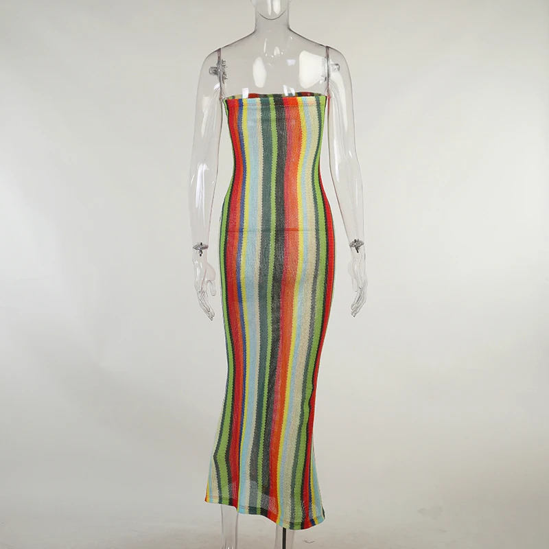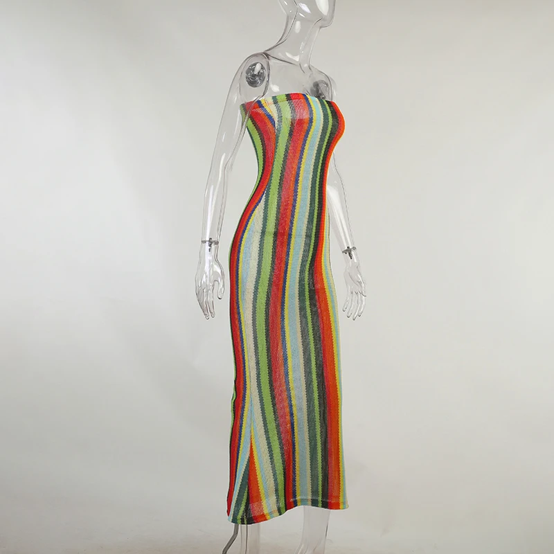 victoria’s vogue Y2K Off Shoulder Knitted Sleeveless Long Dress For Women Sexy Summer Dresses Women Stripe Backless Maxi Dress 2021New
