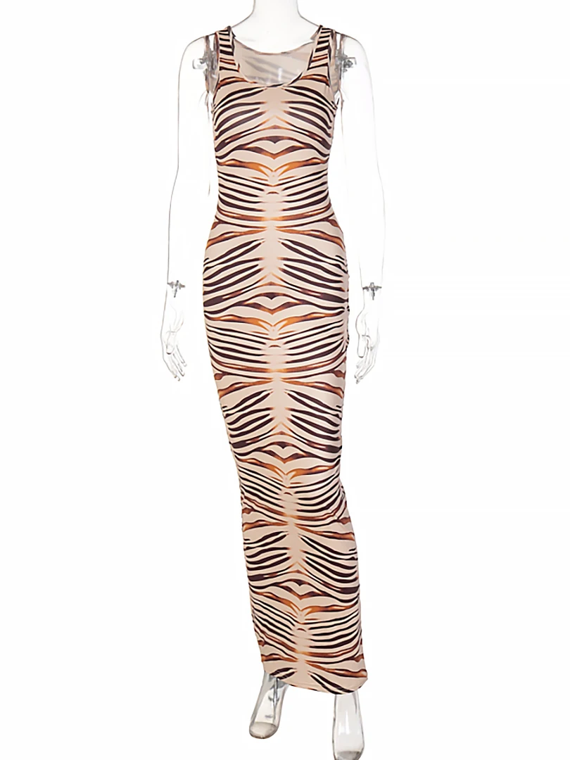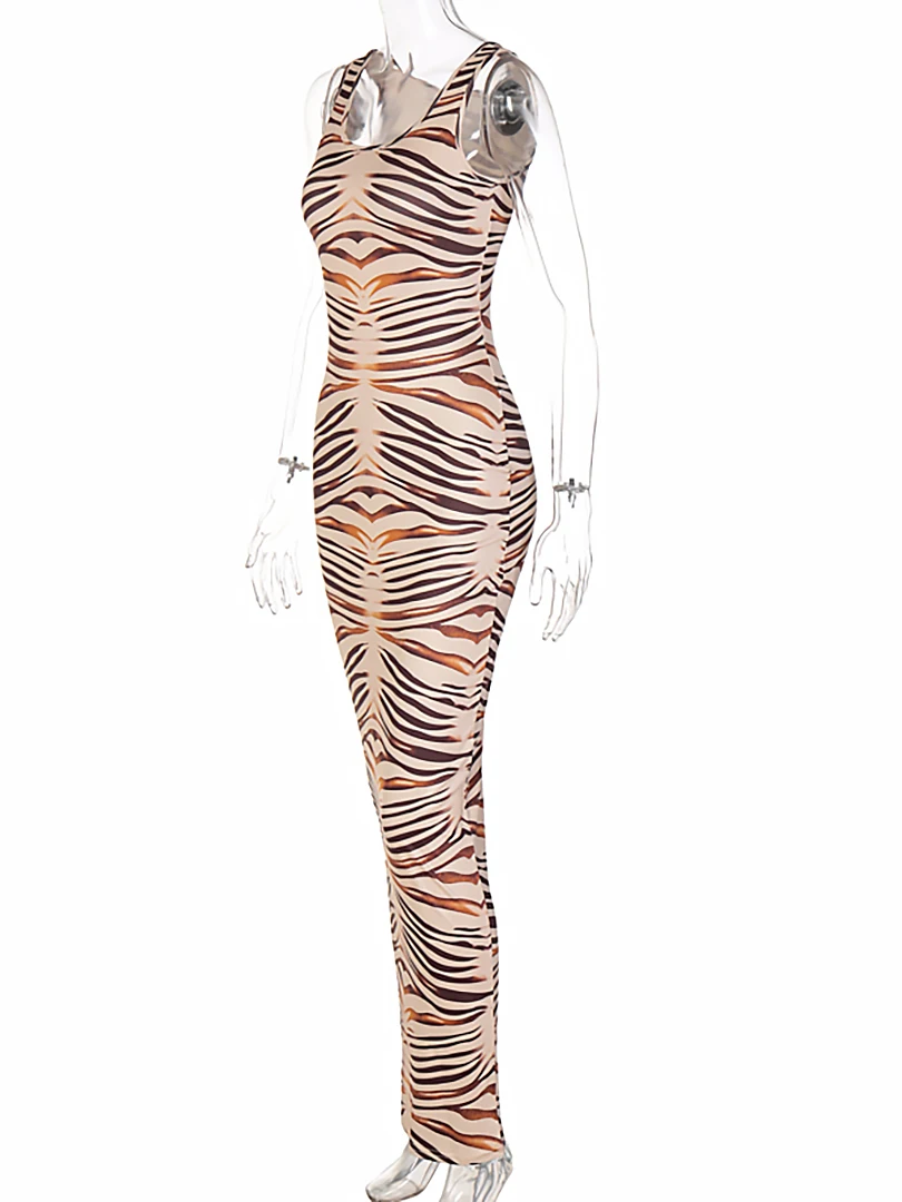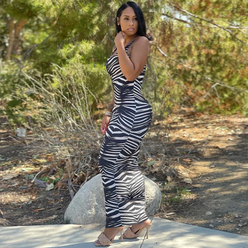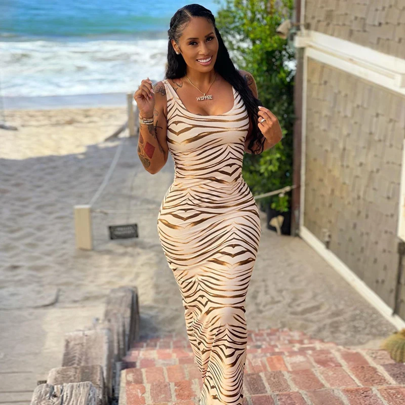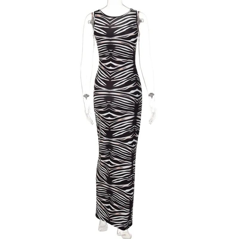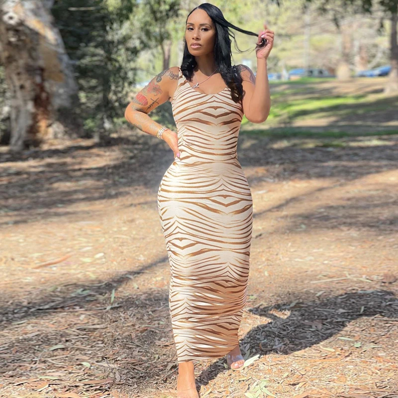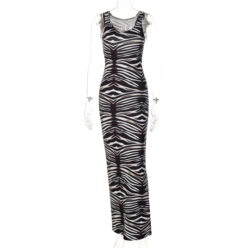 victoria’s vogue Zebra Print Slip Sleeveless Backless Slim Sexy Maxi Dress 2022 Summer Women Party Y2K Concise Bodycon Elegant Clothing