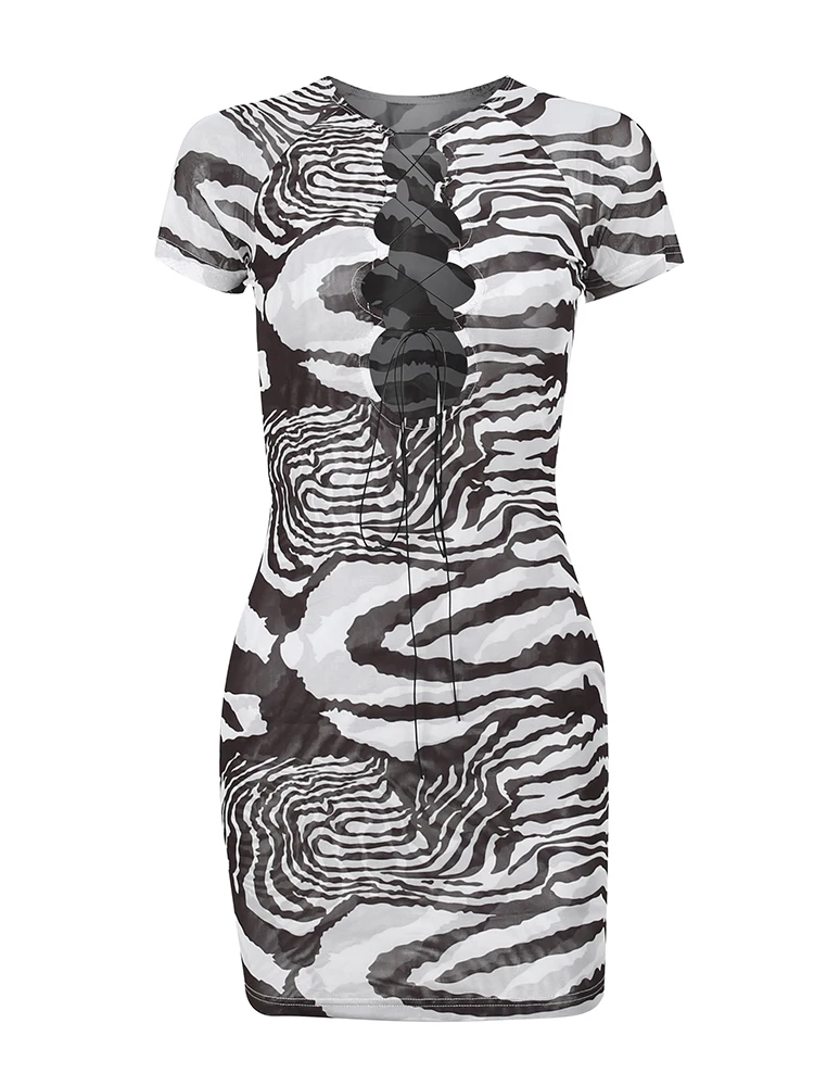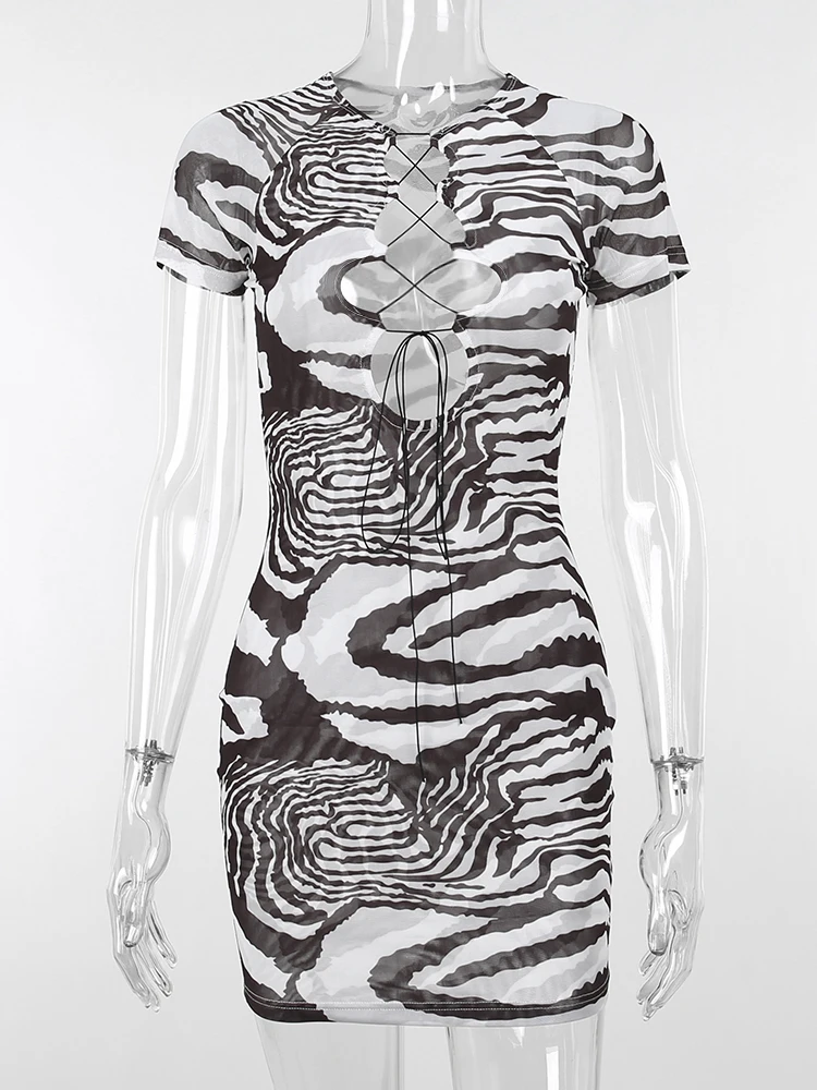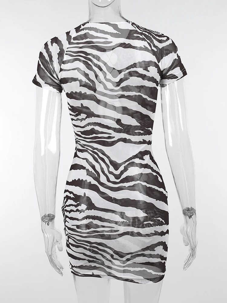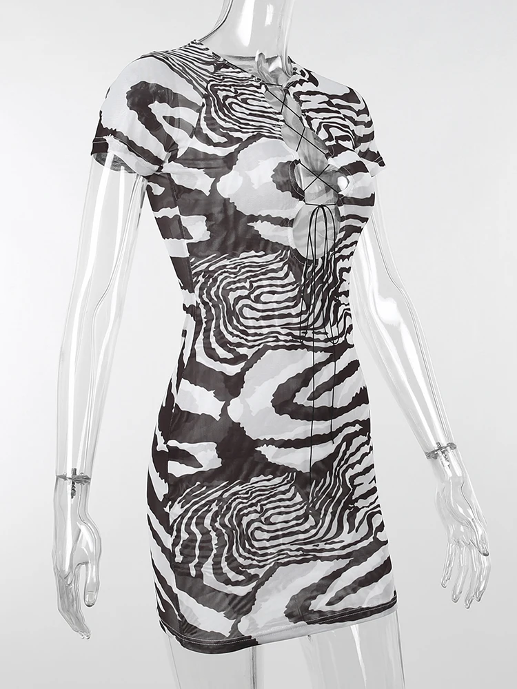 victoria’s vogue Zebra Print Women Shirts Mini Dress Short Sleeve Hollow Out Party Bodycon Sexy Casual Black Korean Fashion Dress
