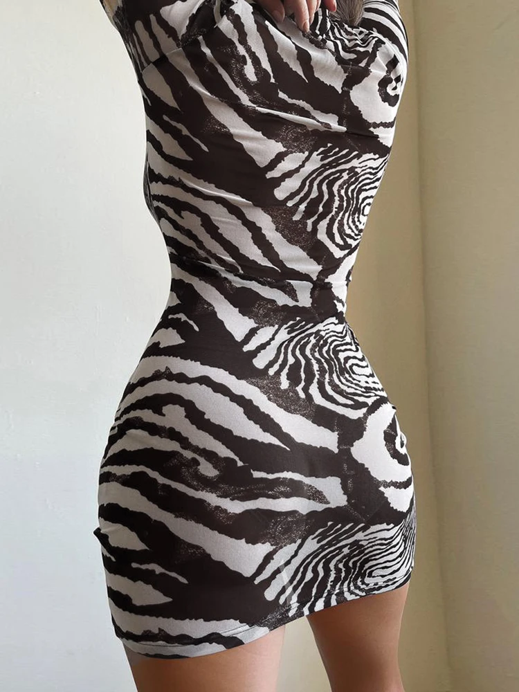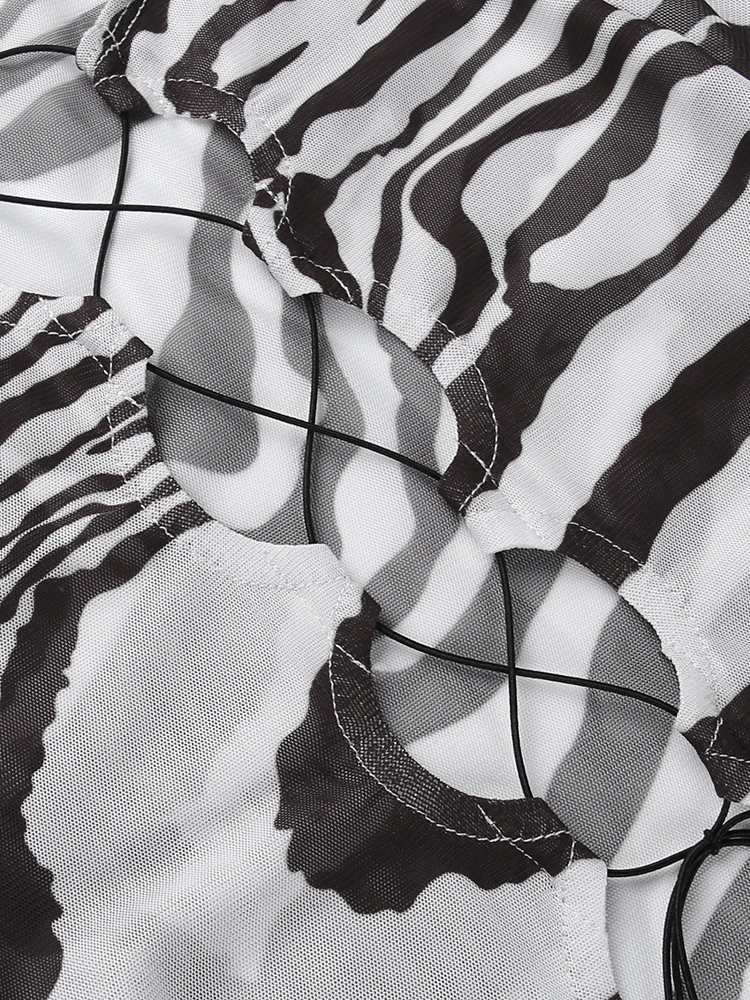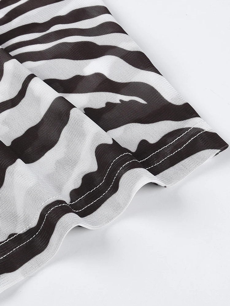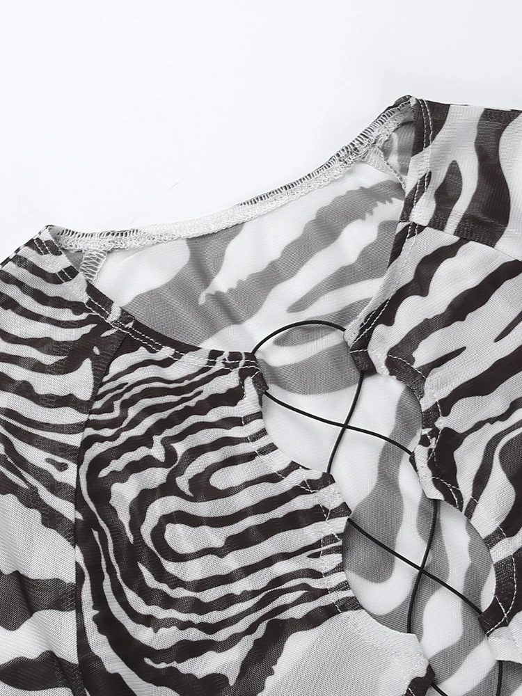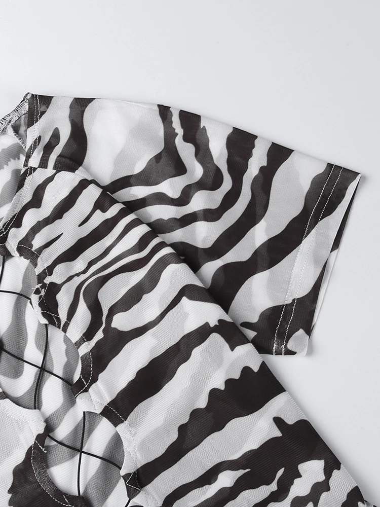 victoria’s vogue Zebra Print Women Shirts Mini Dress Short Sleeve Hollow Out Party Bodycon Sexy Casual Black Korean Fashion Dress