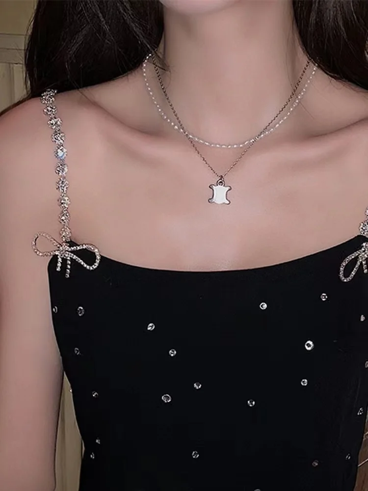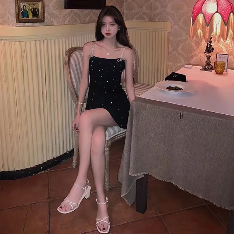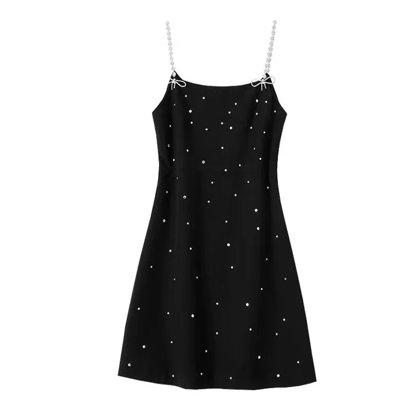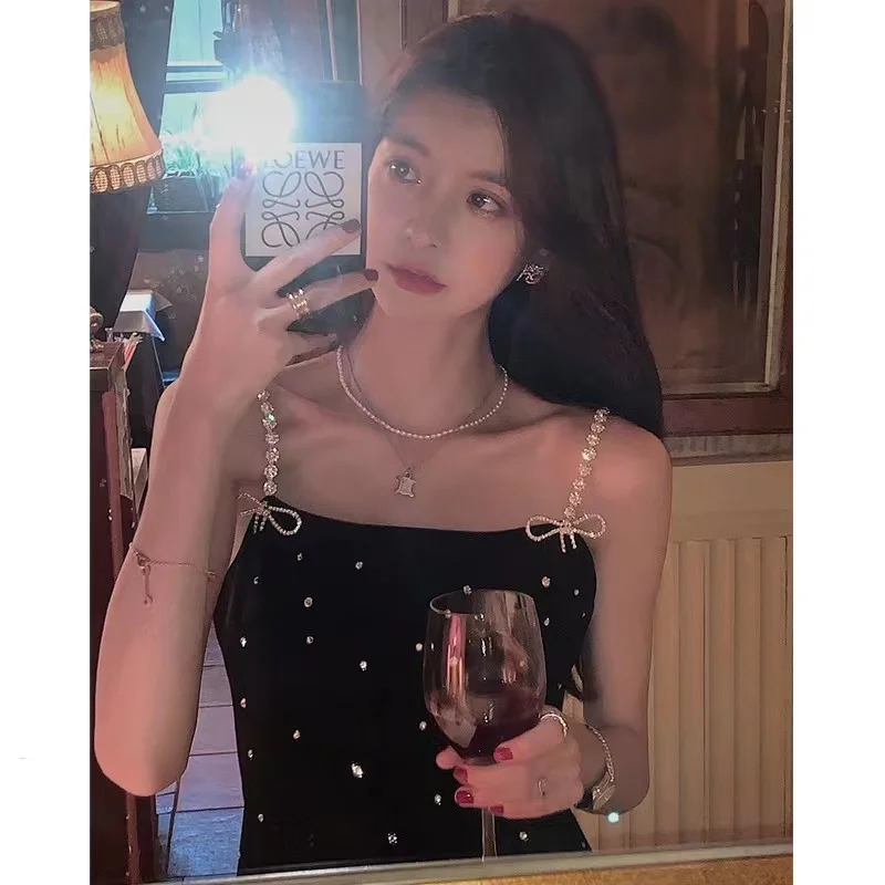 Victoria”s Vouge Sparkling Diamond Strap Black Dress for Women 2023 Spring/Summer Sexy Short Style Strap Dresses