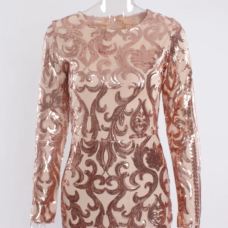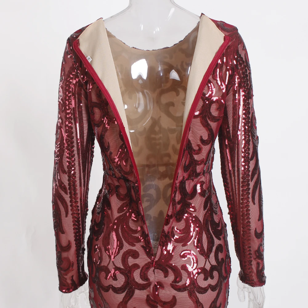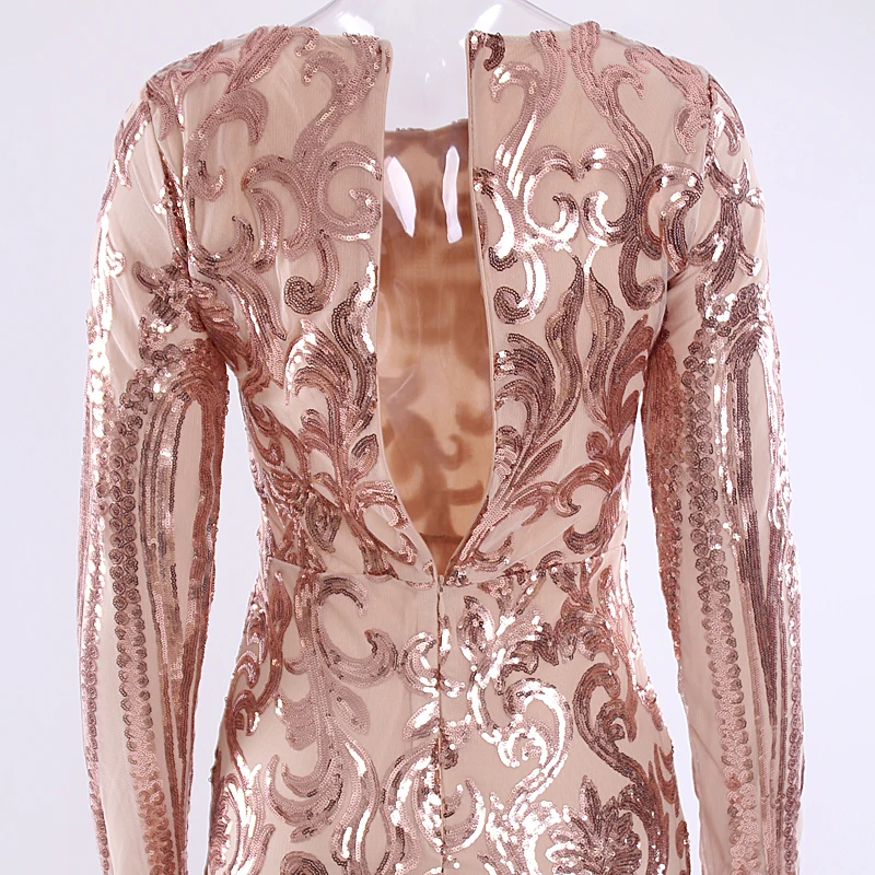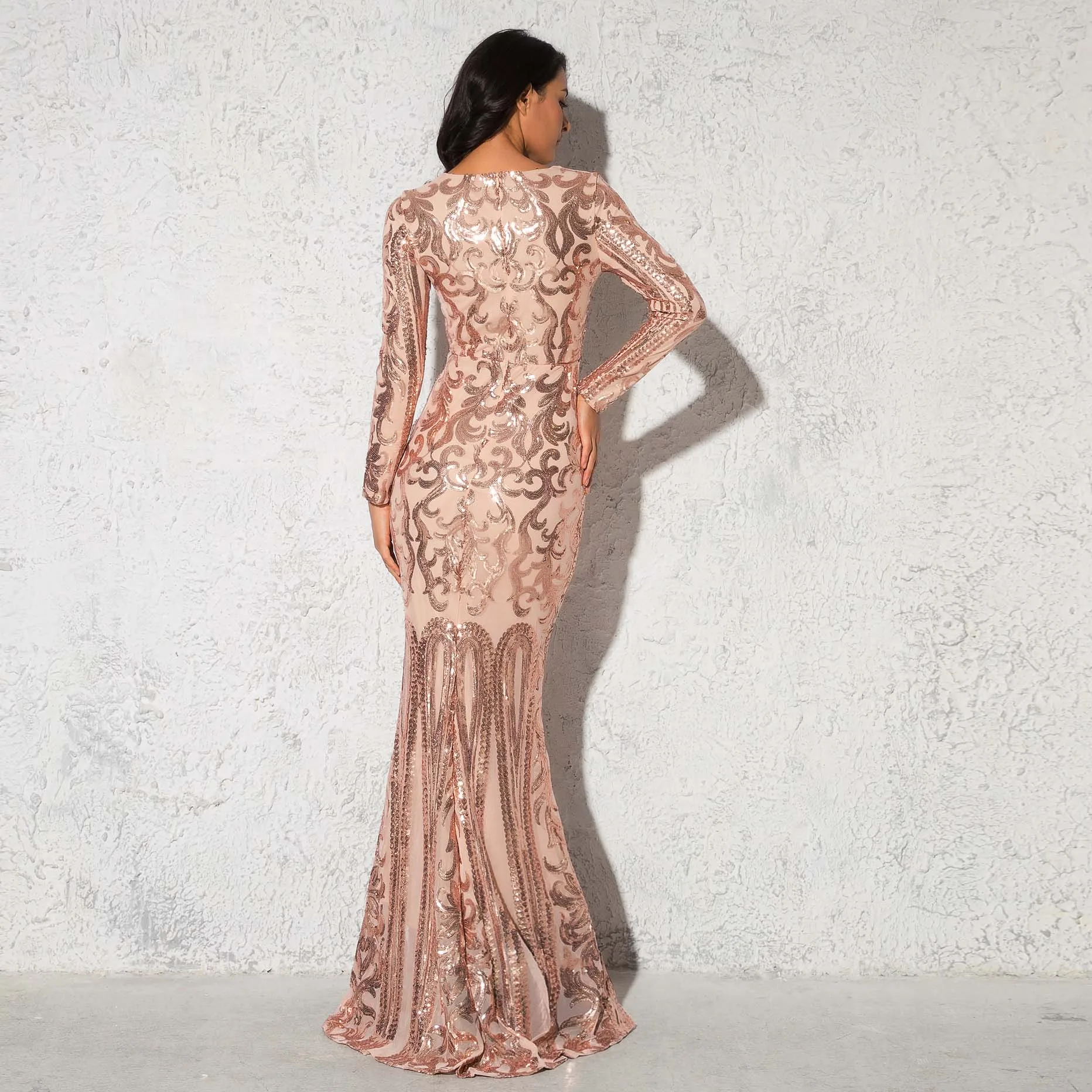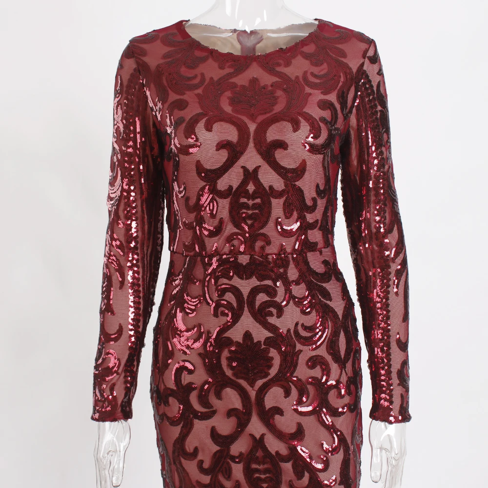 victoria’svogue 2021 Gold Elegant Full Sleeved O Neck Sequined Evening Party Dress Stretch Floor Length Lining Bodycon Burgundy Black Maxi Dress