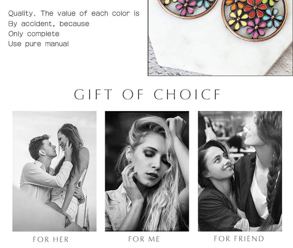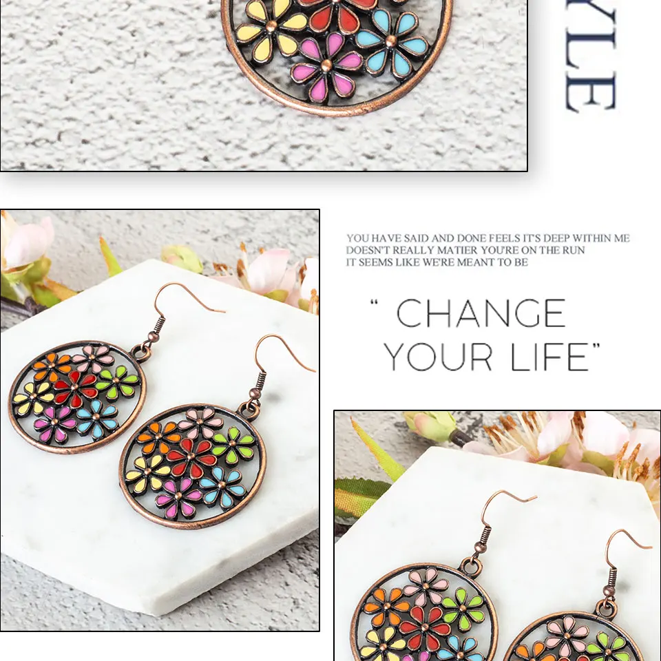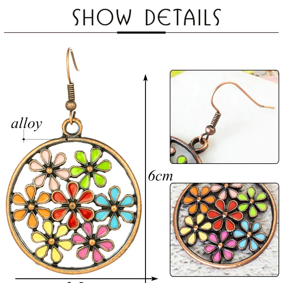 victoria’svogue 2021 Vintage Bohemian Boho Ethnic Antique Flower Oil Drip Hollow Round Drop Earrings for Women Fashion Jewelry Accessories