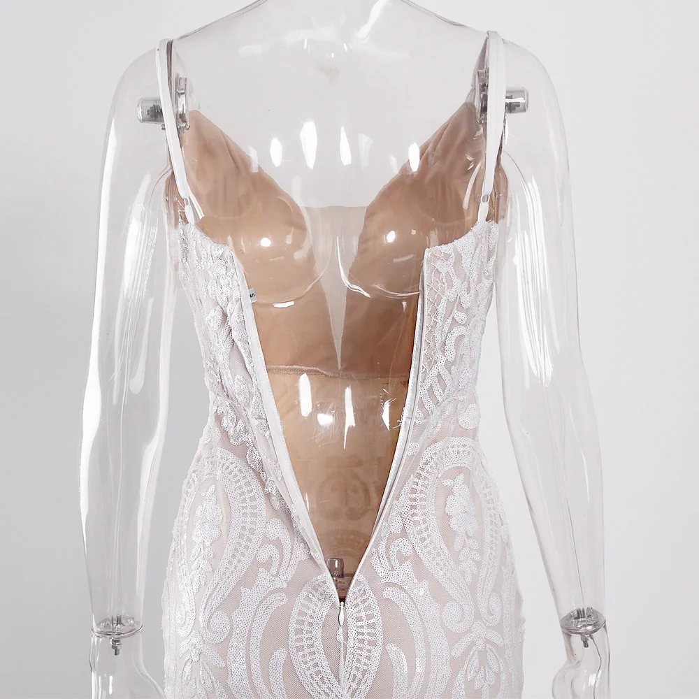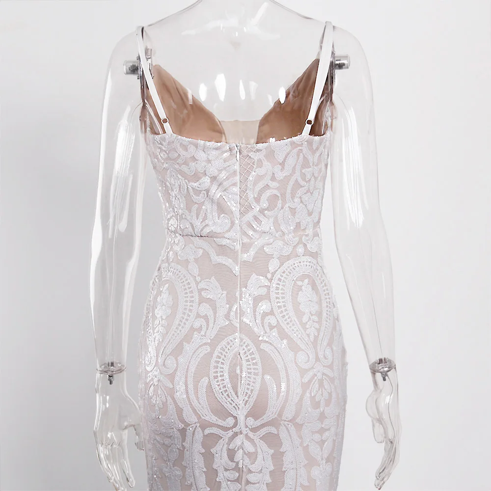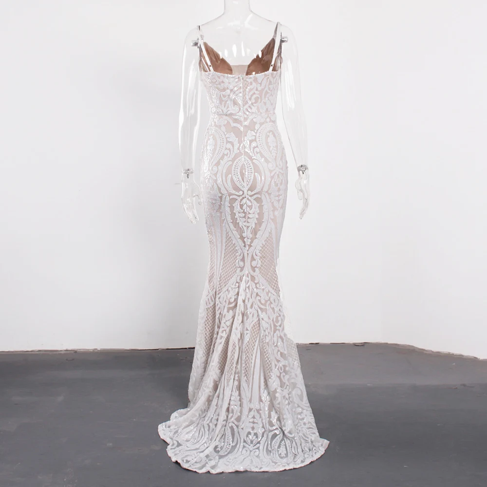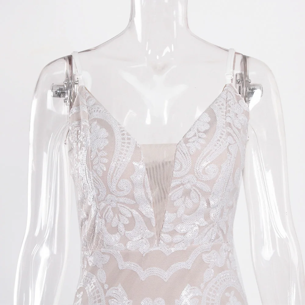 victoria’svogue 2021 White Sequin Nude Lining V Neck Backless Long Dress Evening Party Stretch Sleeveless Elegant Mermaid Gown