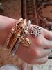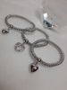 Three bracelets on hand. Bracelets in reality are even more beautiful than in the photos. They are made unusually of metal plates, and inside there is an elastic band. Also there are pendants: 3 Hearts, of which one is made with rhinestones. Look attractive. But unfortunately, they are too big for me, the sizes are in the uneven form of 19 cm. So keep in mind, on a thin wrist unfortunately will not work, my wrist is 12 cm. Bracelets are completely independent and whole in terms of completion. They are interesting, noticeable and fascinating. These bracelets will be the highlight of the image!