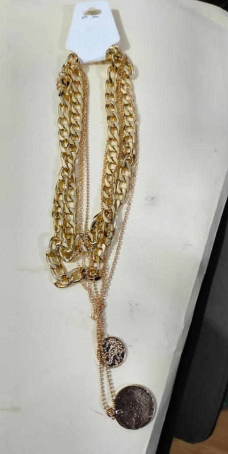 Золотая пластмасса цепи дёшево смотрится. На троечку.