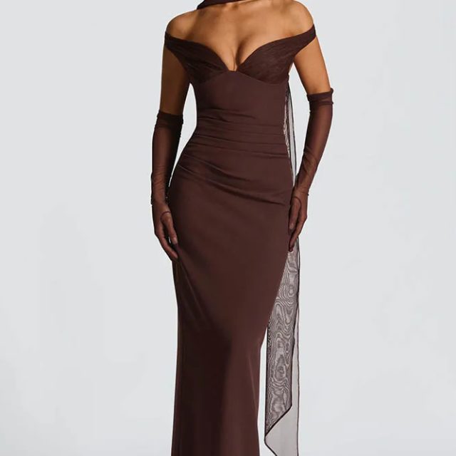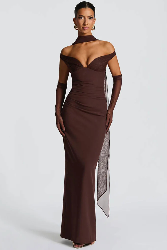 Victoria’sVogue Scarf Collar Off-shoulder Sexy Maxi Dress Women Gown Fashion With Sleeve Strapless Backless Club Party Long Dresses
