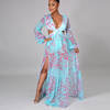 Victoriasvogue Sexy Blue V-Neck Backless Hollow Out Dress 2021 Autumn Women Lantern Sleeve Club Party Evening Dress Maxi Dresses Vestidos
