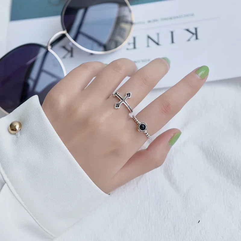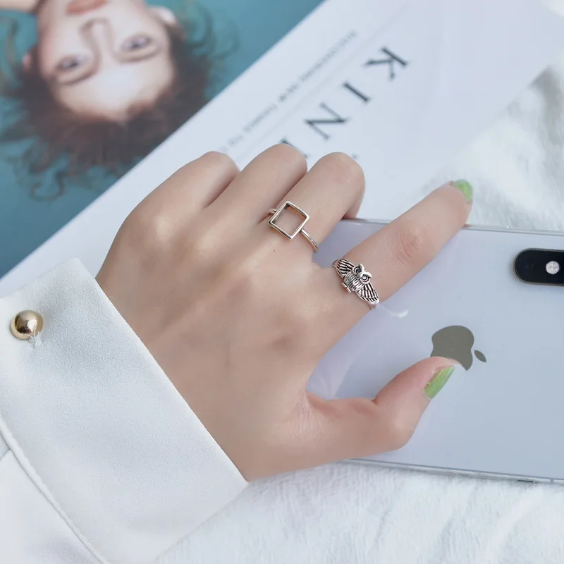 victortia’s vogue Vintage Silver Color Metal Punk Letter Open Rings Design Finger Rings for Women men Party Jewelry Gifts Silver Ring