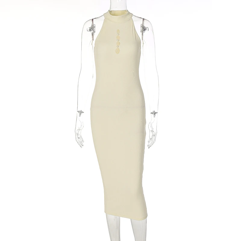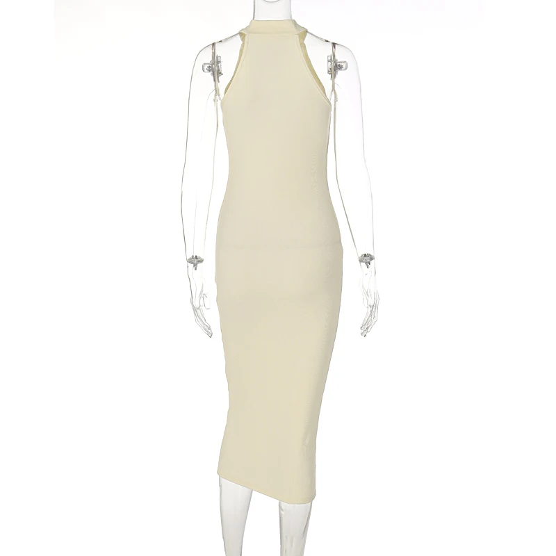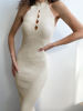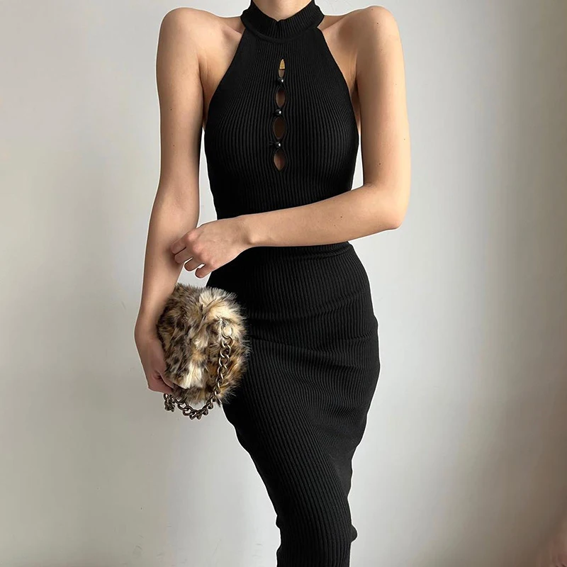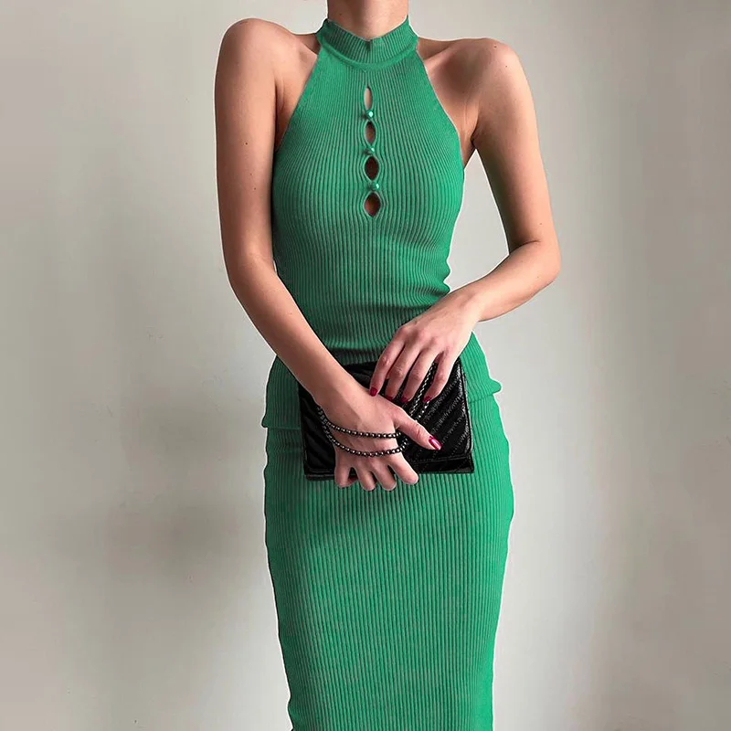victria’s vogue Solid Ribbed Halter Bodycon Sleeveless Skinny Maxi Prom Dress 2022 Sexy Slim Elegant Outfit Y2K Clothing Beach Wear